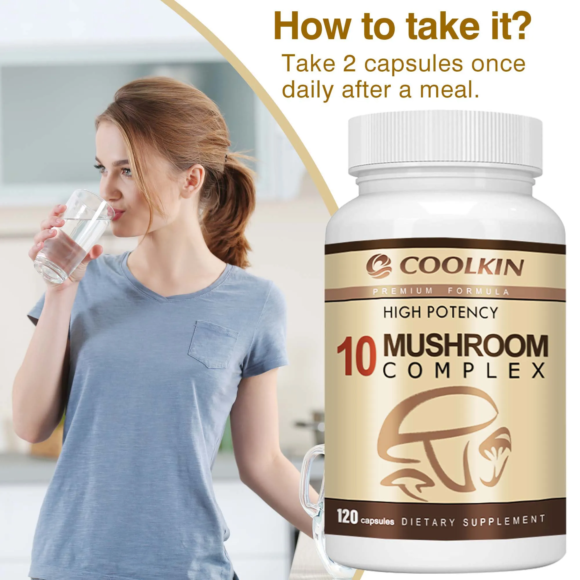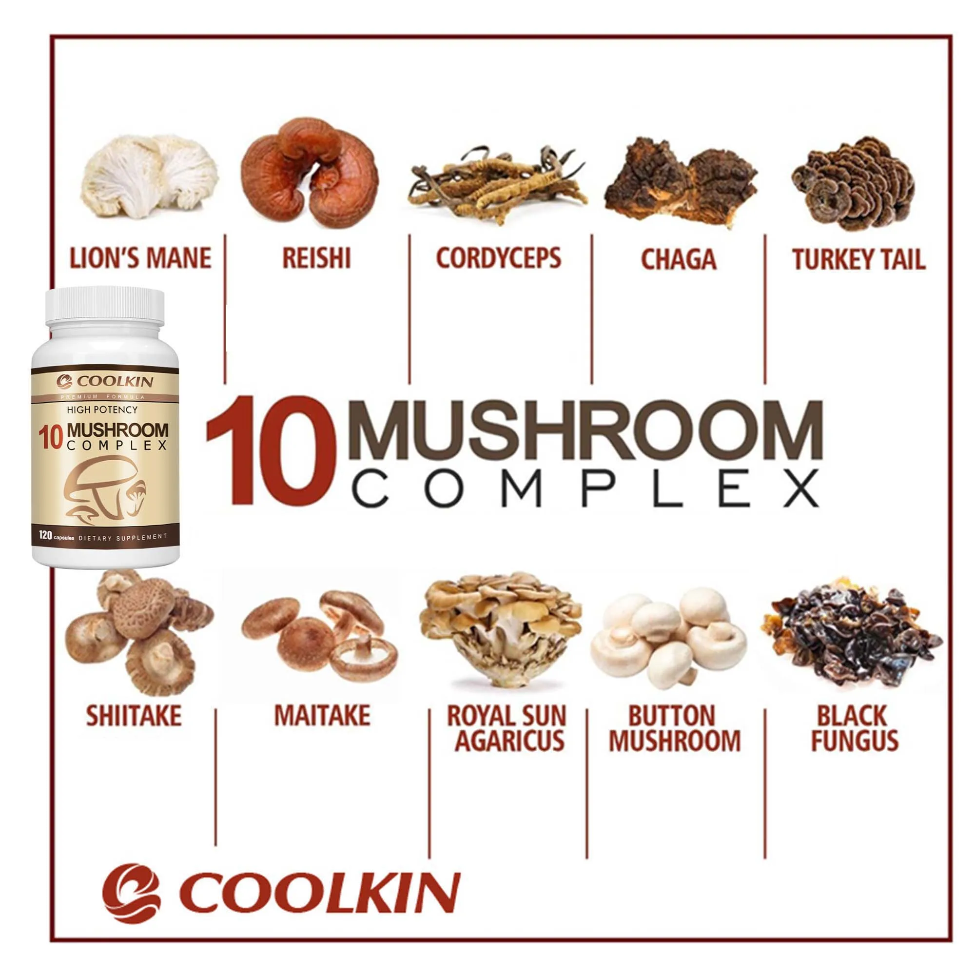 10 Mushroom Complex – Enhance Brain Memory and Concentration, Keep The Mind Clear and Relieve Stress – 120 Capsules