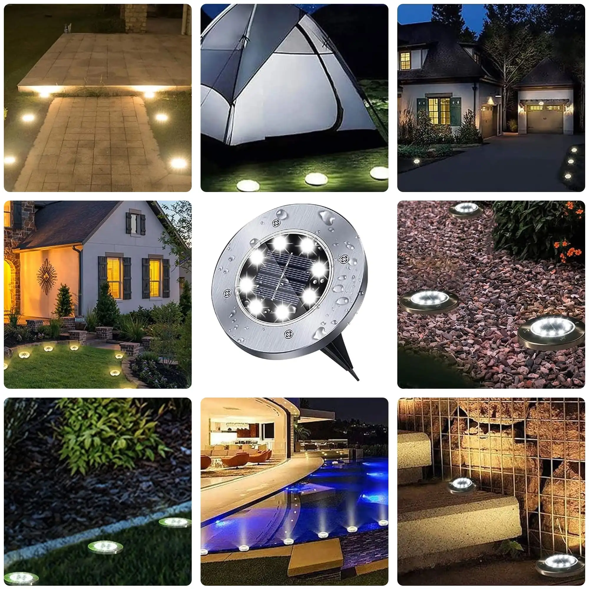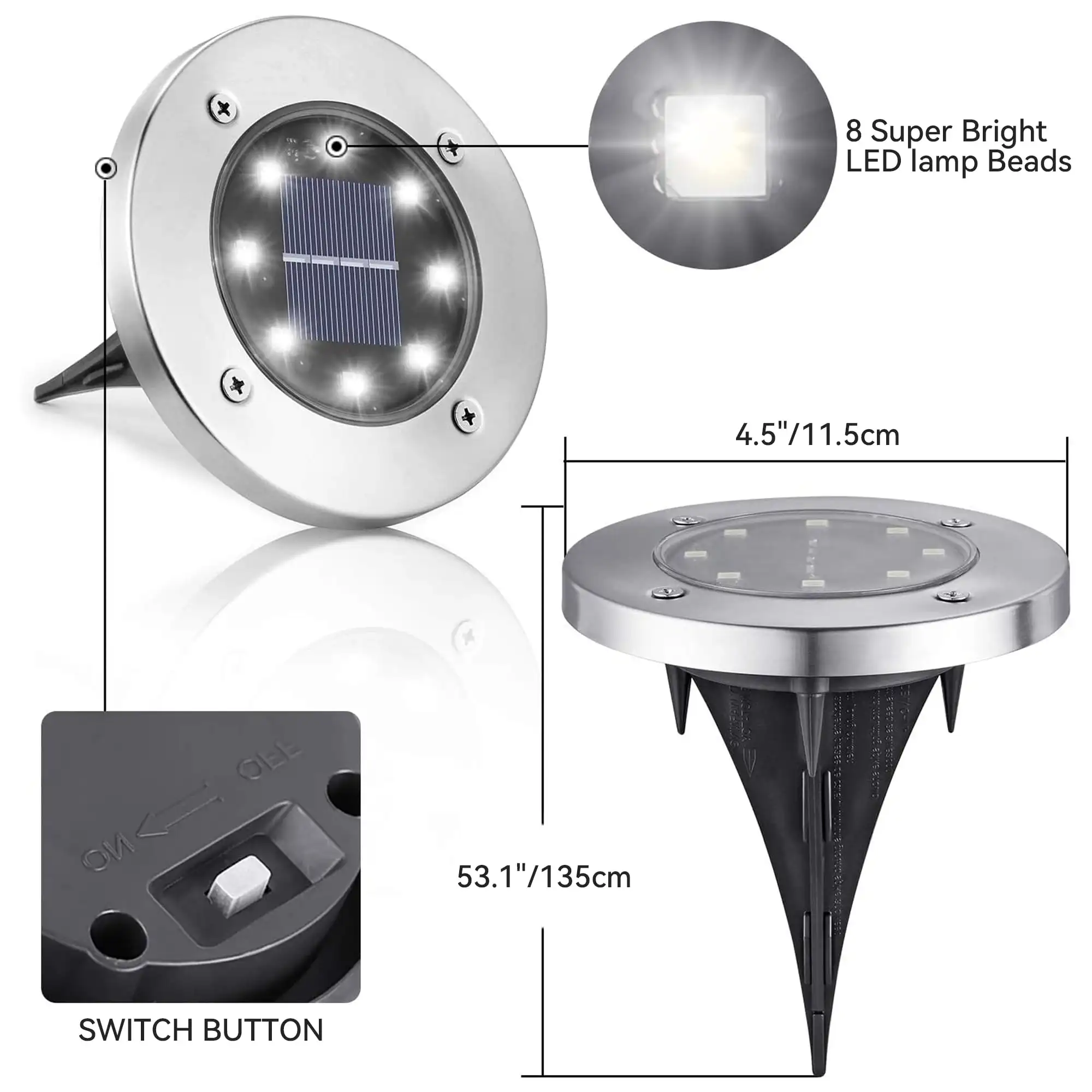12 Packs Solar Landscape Lights: Each in-ground light features 8 bright LED bulbs, emitting a crisp, white light, creating a safe and welcoming environment at night