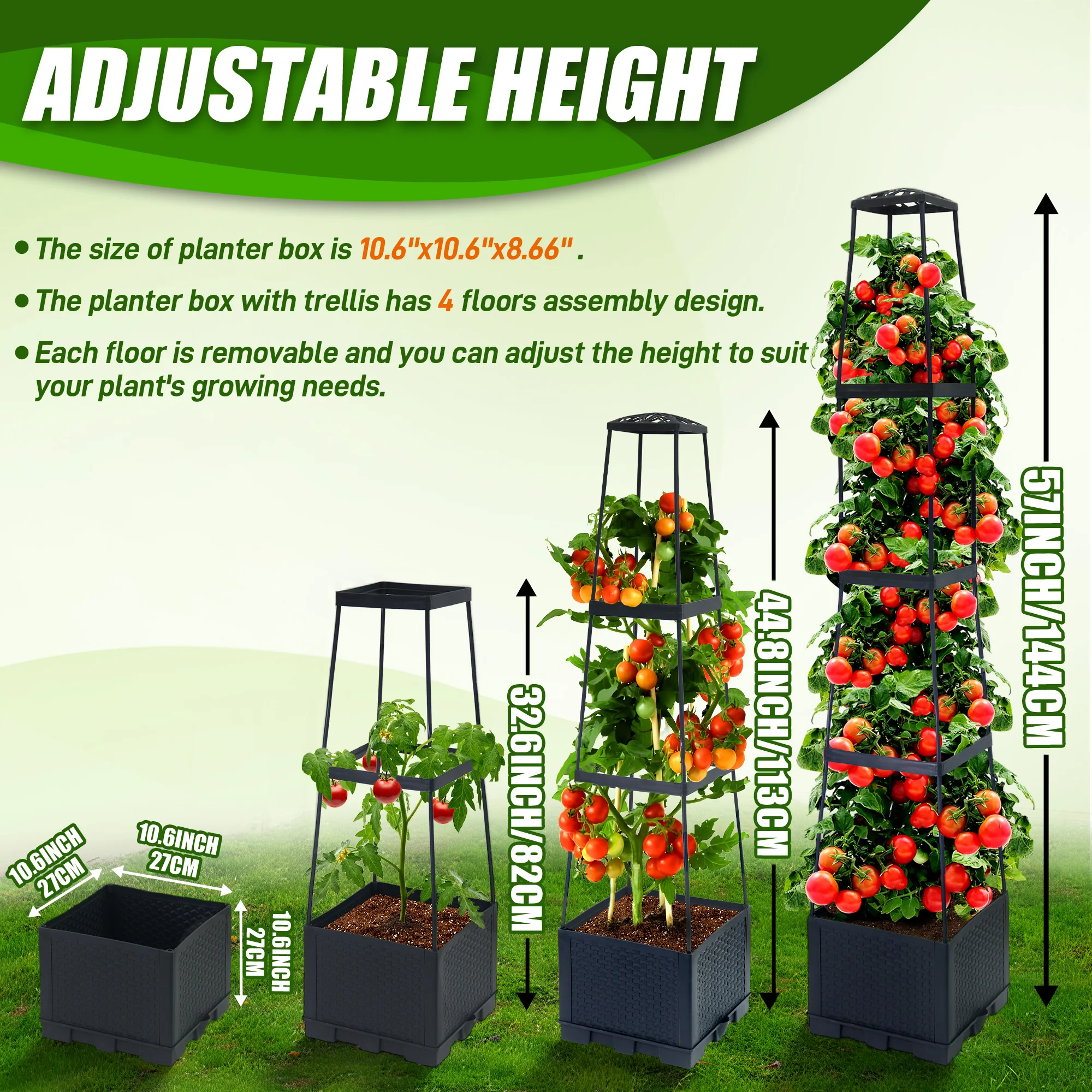 【Flexible Height Adjustment】:Our product consists of planter box and trellis parts, which you can use individually or combine as needed. The planter box with trellis features adjustable height, with a maximum height of 44.8 inches. This allows you to customize the trellis height according to the plant's growth rate or height.