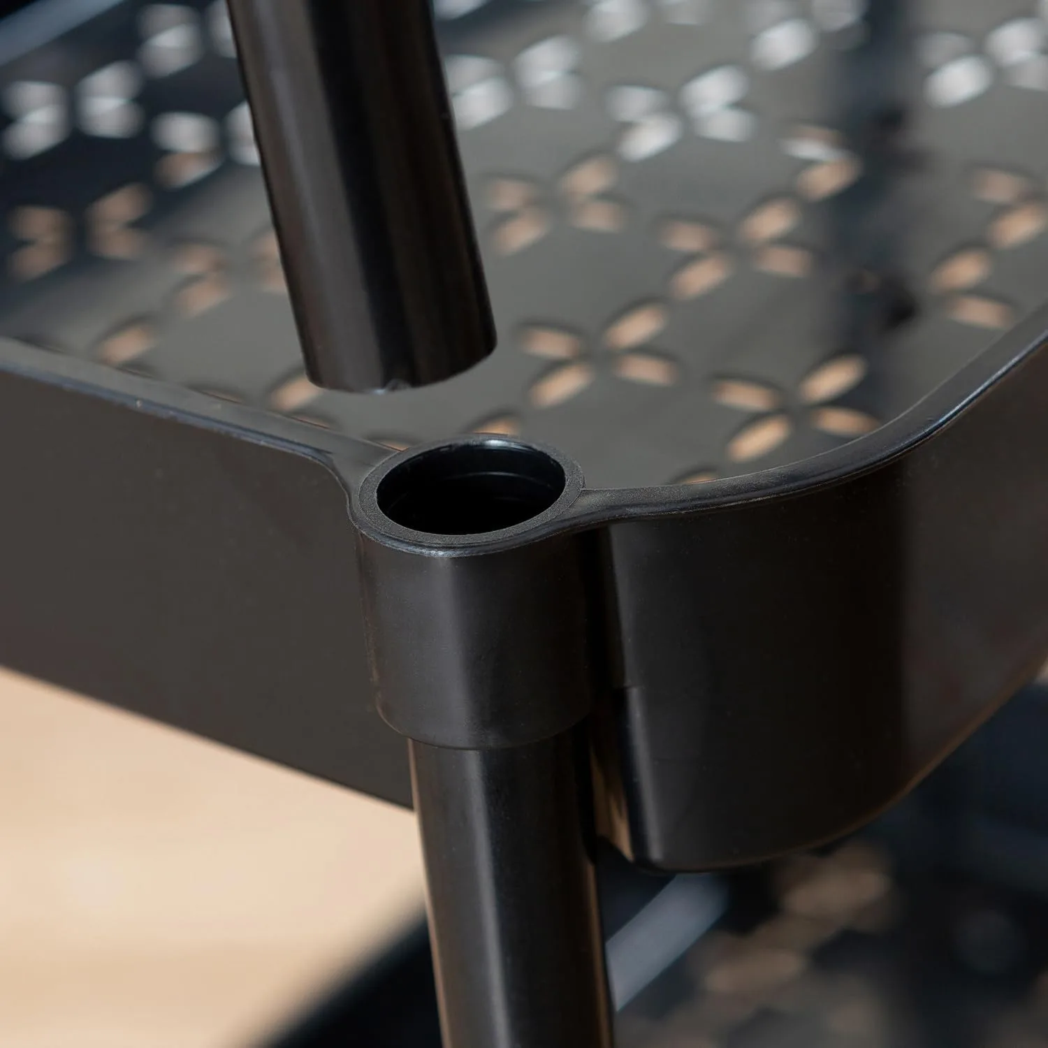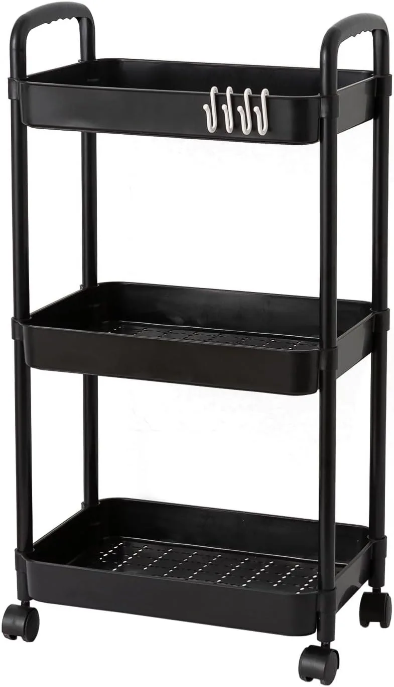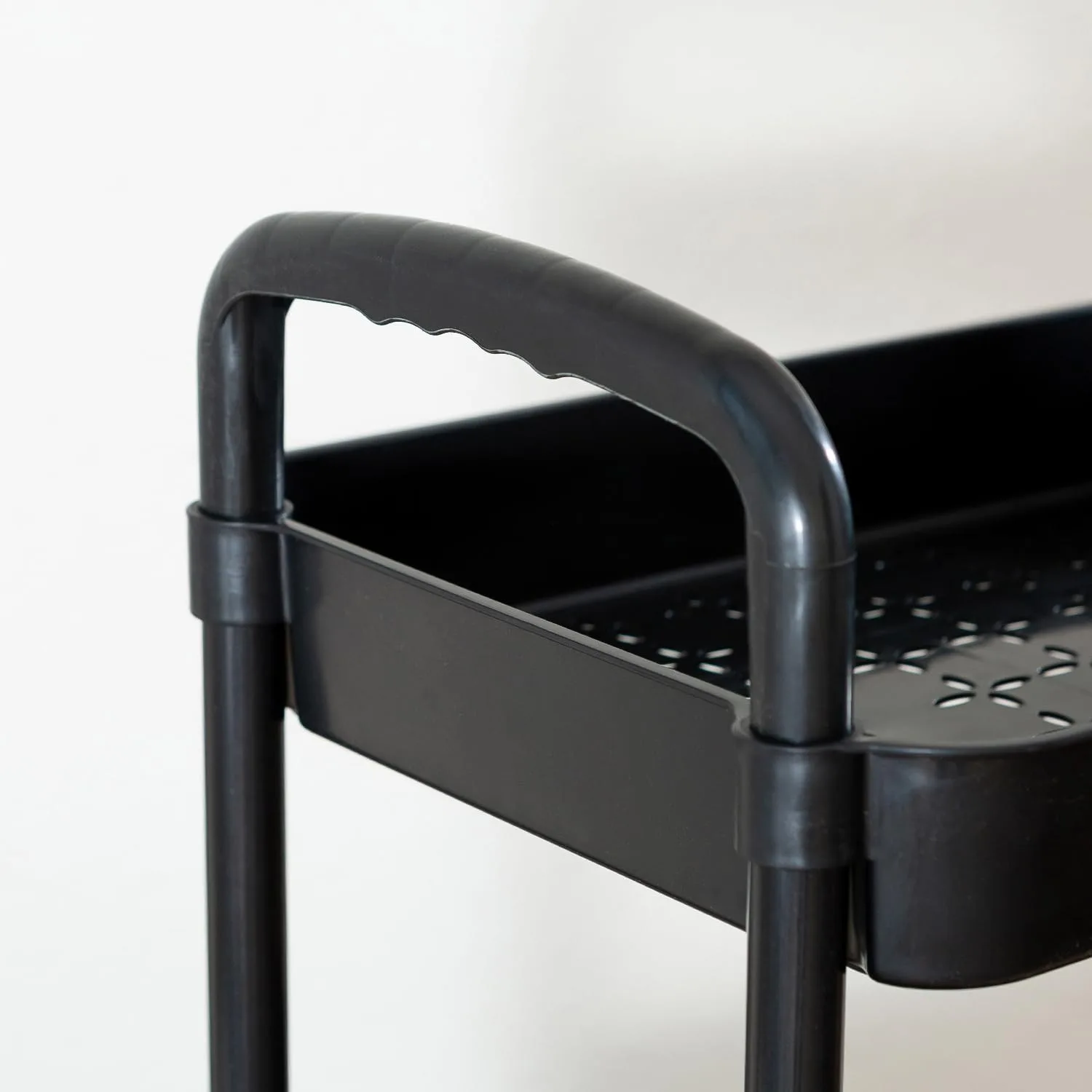 【Plastic Rolling Cart】The Rolling car is made of high-quality plastic.There are beautiful hollow patterns at the bottom of the tray, which allows the air inside the tray to circulate.The trolley will be a good helper for you to tidy up your room.