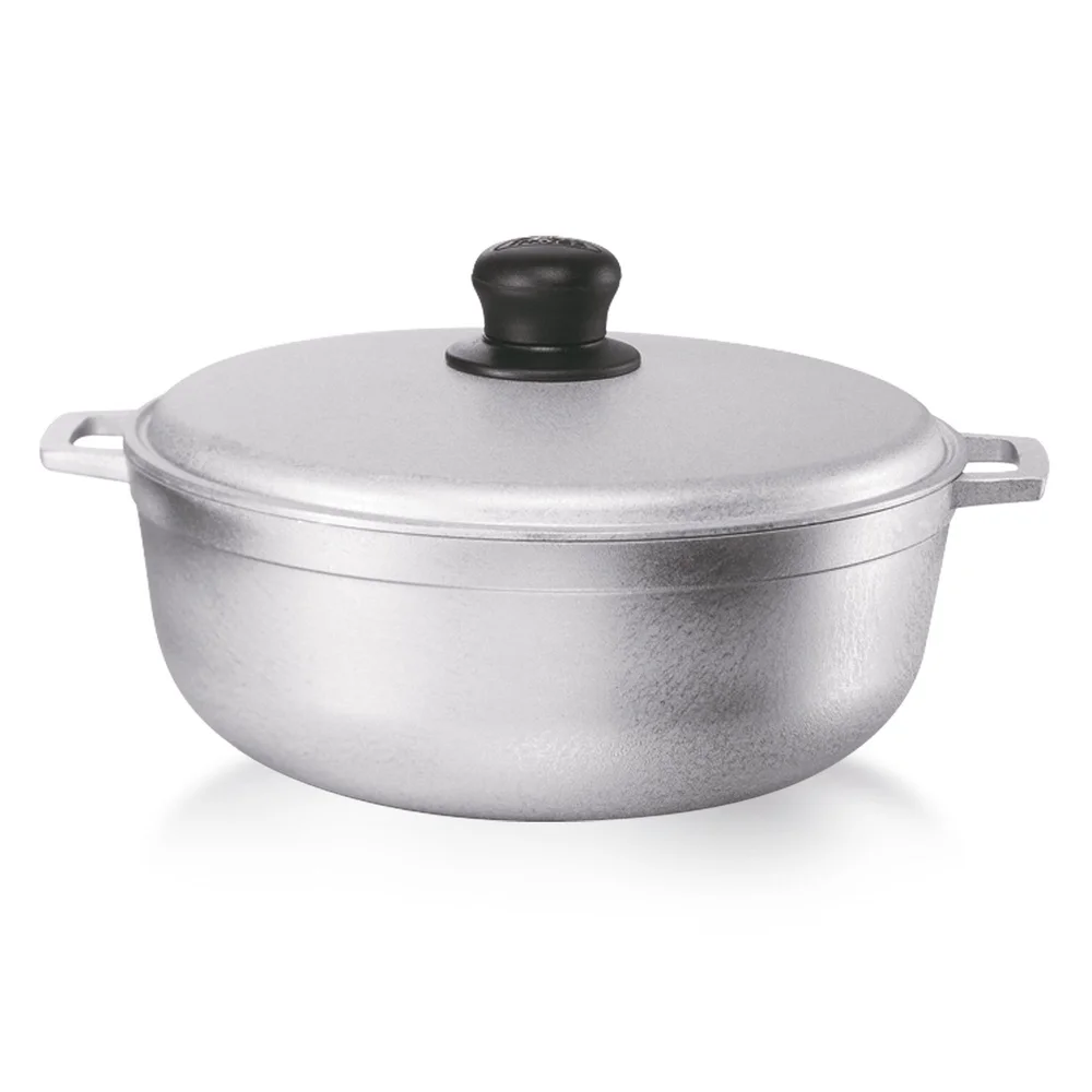 The  3. 7Qt Basic Caldero is an essential piece in every Hispanic kitchen, renowned for its durability and unique design.  This caldero is manufactured in Colombia and is made of cast aluminum with a natural finish cooking surface that seasons over time.  This  cookware piece has a capacity of 3. 7Qt.  The  Basic Caldero includes its tight-fitting lid, steam vent for moisture control, and a convenient knob and side handles for safe operation.  The thick walls will deliver consistent and delicious results each time.  With this versatile piece, you can cook a variety of different meals.  Whether creating gourmet dishes, cooking rice, simmering beans, braising meats, preparing stews, crafting sauces, or enjoying comfort foods, the  Basic Caldero excels.  The  Basic Caldero is oven-safe without the lid, making it perfect for grilling and baking.  After cooking, take this caldero straight from the kitchen to the table as a stylish serving dish.  Trust the  Basic Caldero for balanced, home-cooked meals.  It will surely become your kitchen’s beloved companion, uniting tradition, and innovation in every delectable creation.  Elevate your culinary experience with this enduring symbol of Hispanic heritage.