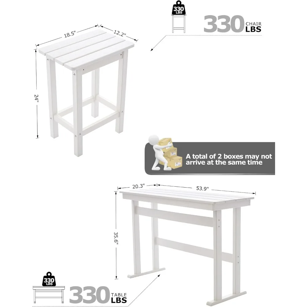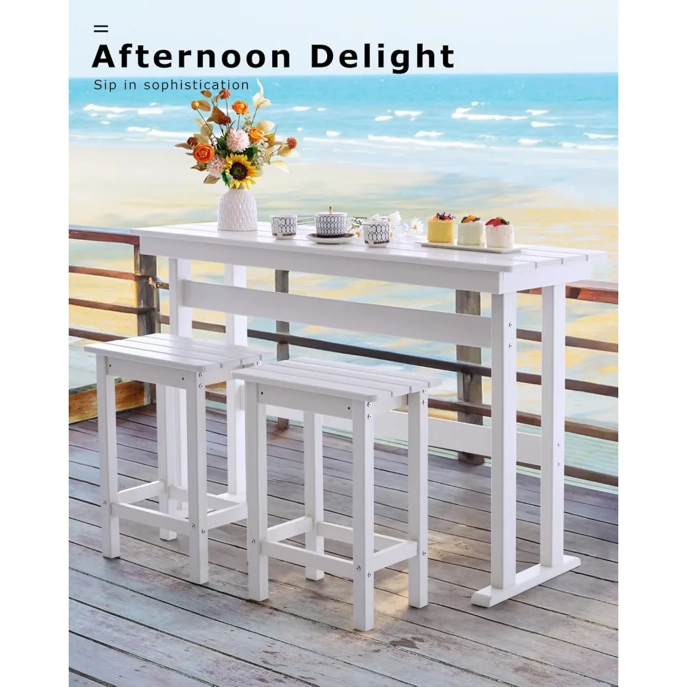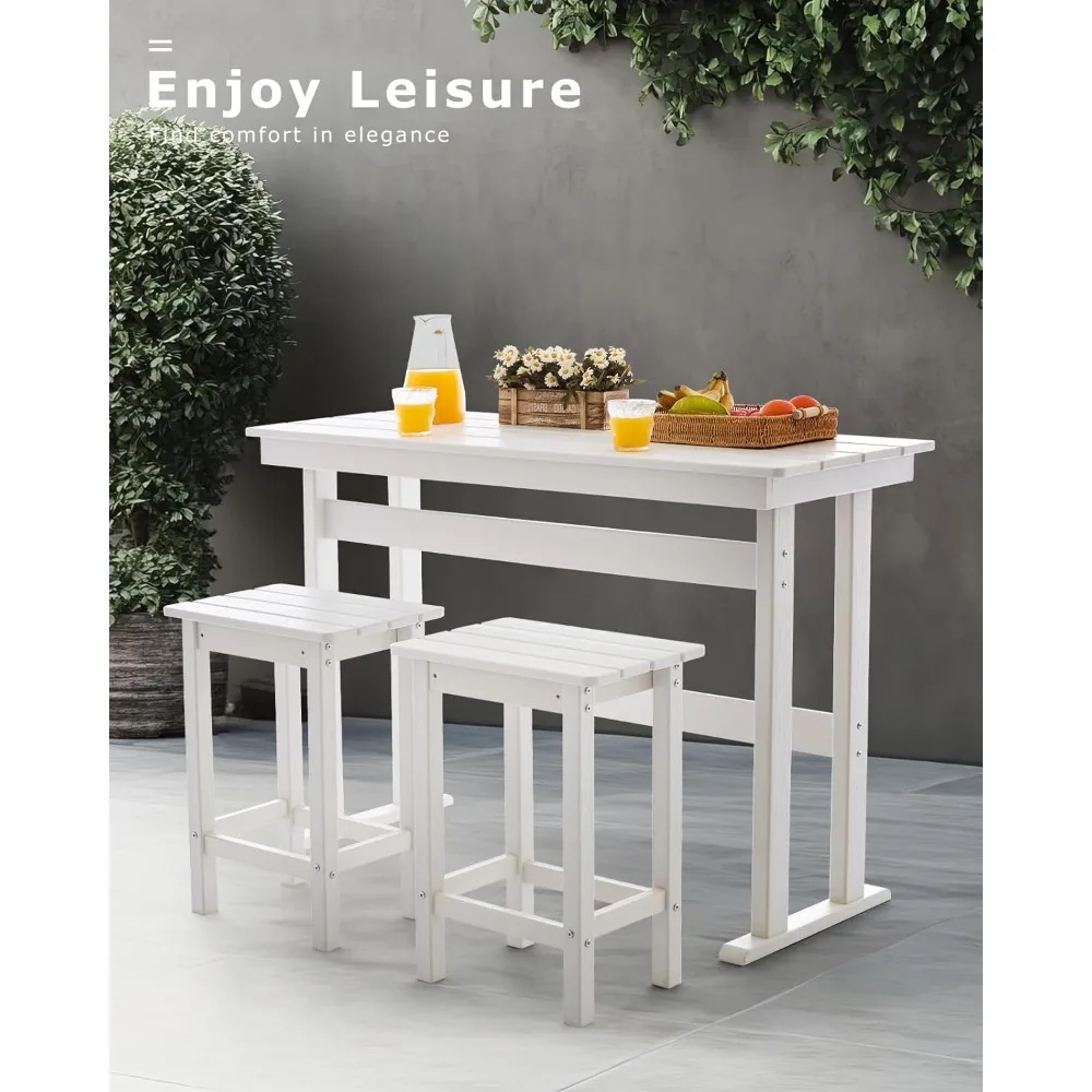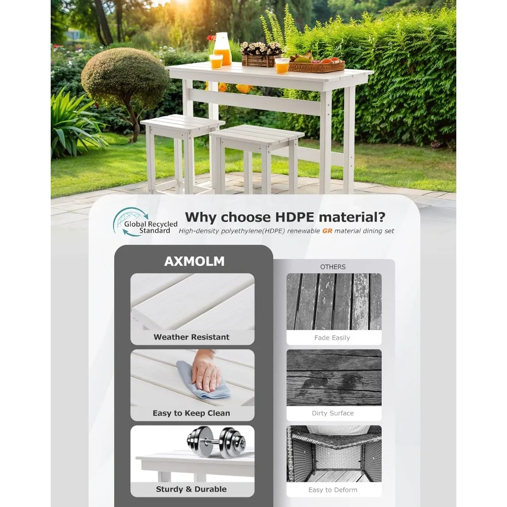 • Superior Strength & Effortless Maintenance Guaranteed: Each piece supports up to 330 lbs, offering exceptional stability. The HDPE surface resists stains and cleans up easily, keeping your bar table and chairs set looking like new.