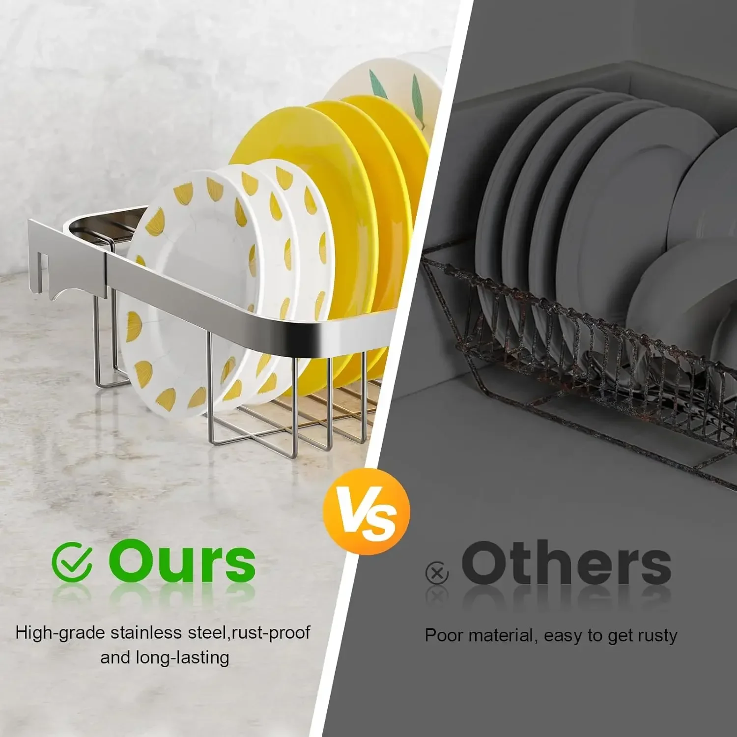 304 Stainless Steel Over-Sink Dish Drying Rack – Adjustable Length, Full Set with Hooks, Cutlery Holder & Tray