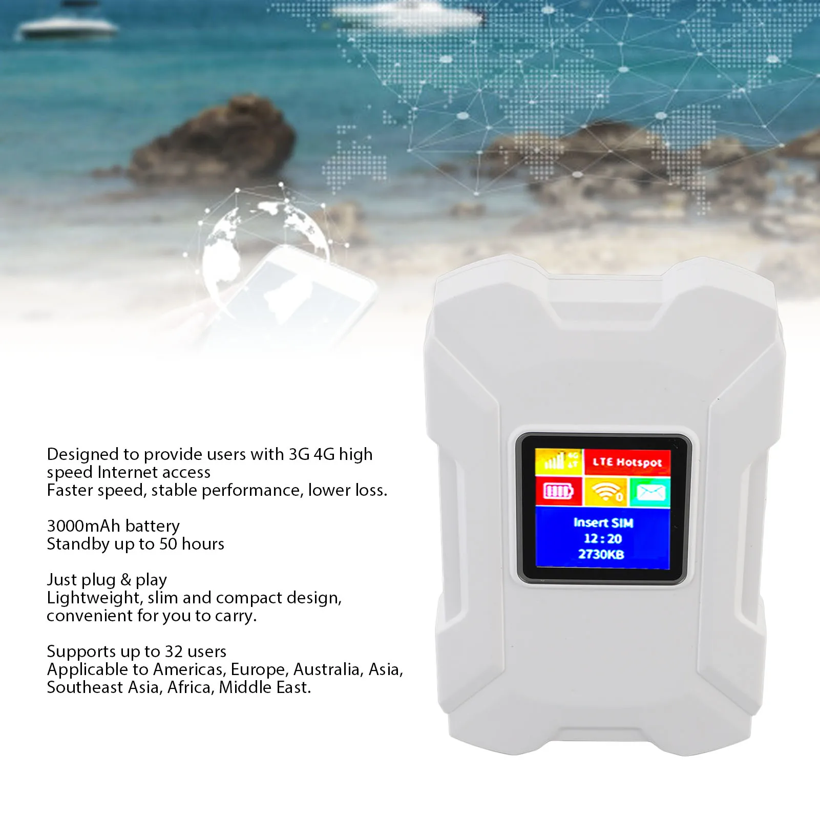 4G LTE Mobile Hotspot Router with 1.44in Color Screen 3000mAh Support 32 Users for Americas Europe Australia Asia Southeast Asia Africa Middle East