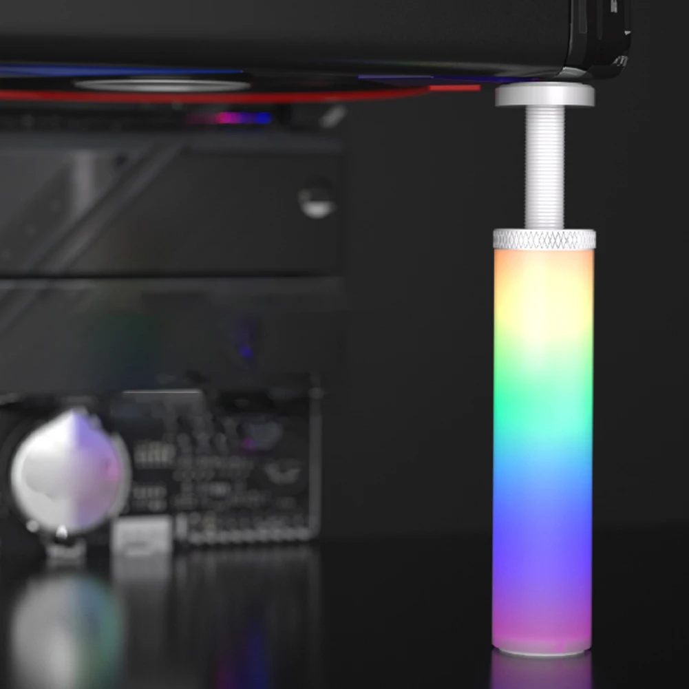 Feature: 1. Adjustable Spiral Design for Enhanced Compatibility: The graphics card GPU holder support boasts an adjustable spiral design, allowing for easy height adjustment and locking of the support rod. This user-friendly feature ensures compatibility with various case specifications, including compatible with ATX, M-ATX, and ITX, providing effective support for the tail of the graphics card and safeguarding its performance. 2. Durable Aluminum Alloy Construction: Made from robust aluminum alloy, the video card bracket stand is designed for longevity and durability. Treated with CNC injection molding, its surface offers an exceptional texture that remains new over time. This construction provides stable support and protection for the graphics card, ensuring balanced stress distribution for smoother operation and more enjoyable gaming experiences. 3. ARGB Lighting Synchronization for Aesthetic Appeal: The graphics card holder incorporates a 5V 3-pin ARGB dual-interface design, significantly enhancing its expandability. It supports ARGB lighting sync interfaces from major motherboard brands like compatible with ASUS, MSI, Gigabyte, and ASRock, allowing for software-controlled, programmable 16.8 million color lighting effects. The vibrant, soft, and full colors add a cool aesthetic to your gaming setup. 4. Magnetic Design & Protective Pads for Secure Installation: Equipped with a strong magnet and silicone pad design, the graphics card GPU brace ensures a stable and secure attachment, facilitating convenient installation. It can adhere to iron materials like the power supply bay or the bottom panel of the case, providing stable support for your graphics card. The top surface is covered with a silicone pad to prevent scratches and displacement, offering intimate protection for the graphics card. 5. Detachable and Adjustable Structure for Custom Support: The GPU support bracket features a detachable and adjustable design, supporting a wide range of height adjustments (from 70 to 125mm) with its external bracket, bracket cap, and internal bracket screw column. This allows for flexible support height customization, catering to different user needs and ensuring optimal support for the graphics card. Specification: Note: