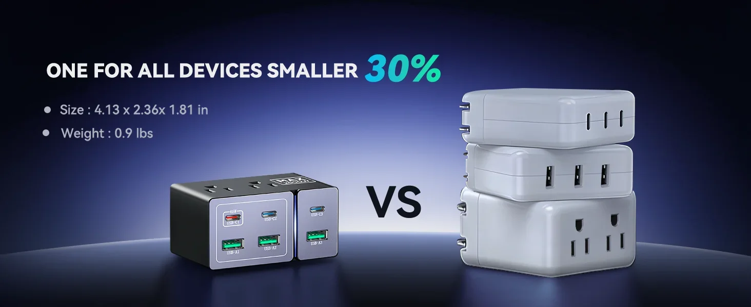 【8 in 1 Charging Block】One device meeting the charging needs of most electronic devices,with 2 AC outlets(2000W max) it can connect home appliances like projectors, computer,fan,monitors and more.Total 160W-3 USB C and 3 USB A port for charging Laptop(single port max 65W power), iPhone15 14 13 12 Samsung S24 Galaxy and other Android phones, smart watch and tablet, power bank, camera, handheld game console, headsets, and everything else that is charged through a USB port.