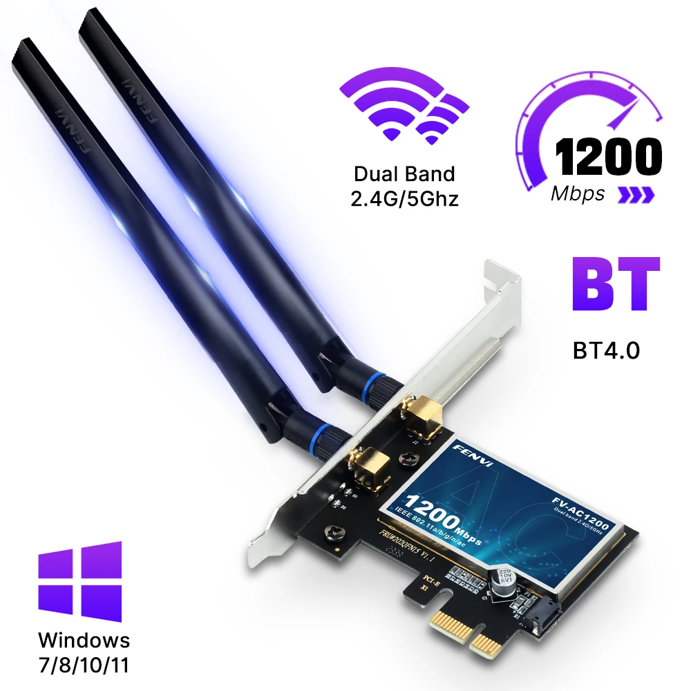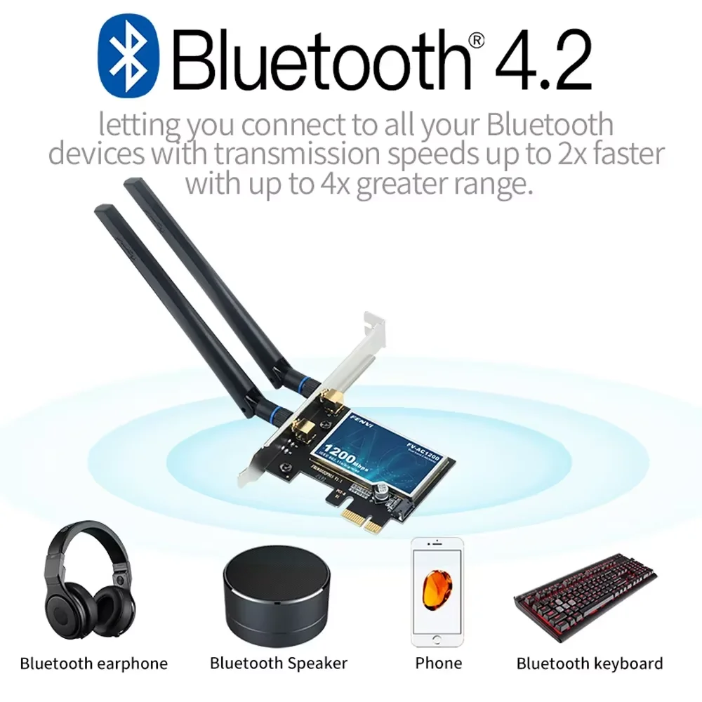 WiFi 5 AC1200 PCI-E Wireless Adapter Network Card Bluetooth 4.0 Dual Band 2.4G/5GHz 802.11AC Desktop Laptop PC For Windows 7/8/10/11