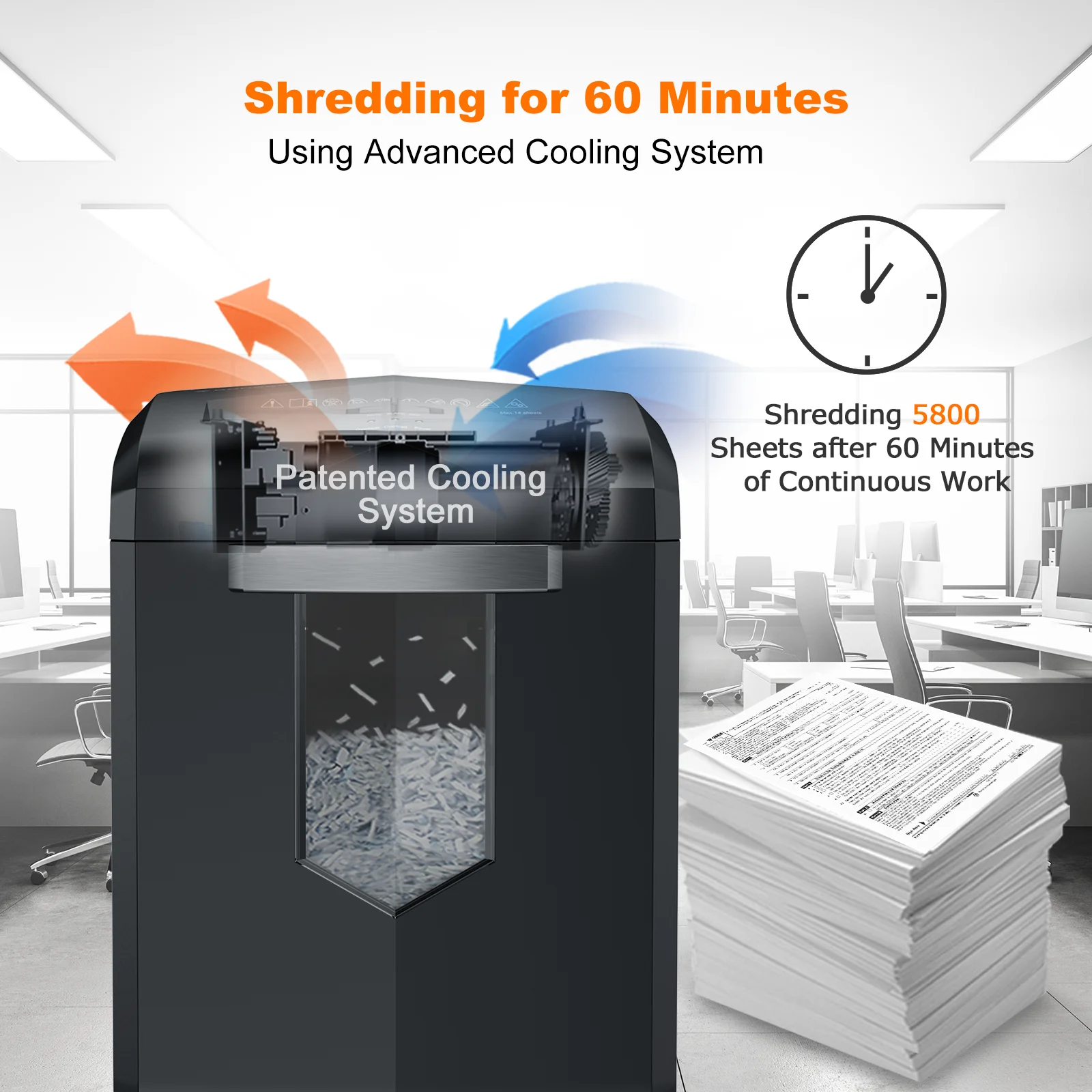 The heavy-duty document shredder, with a noise level of only 62 dB, provides you with a quiet and smooth shredding experience. The four casters make it easy to move the shredder to any location you need.