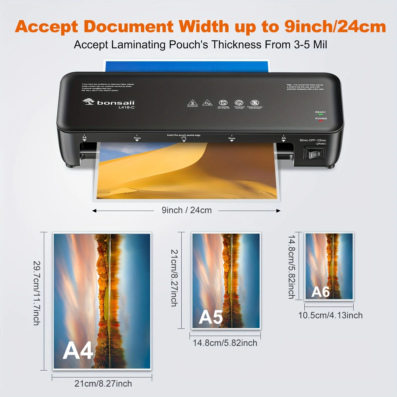 Bonsaii 9-Inch Thermal Laminator: Effortlessly Laminate Docs & Photos with Never-Jam & Smooth Operation Technology for home