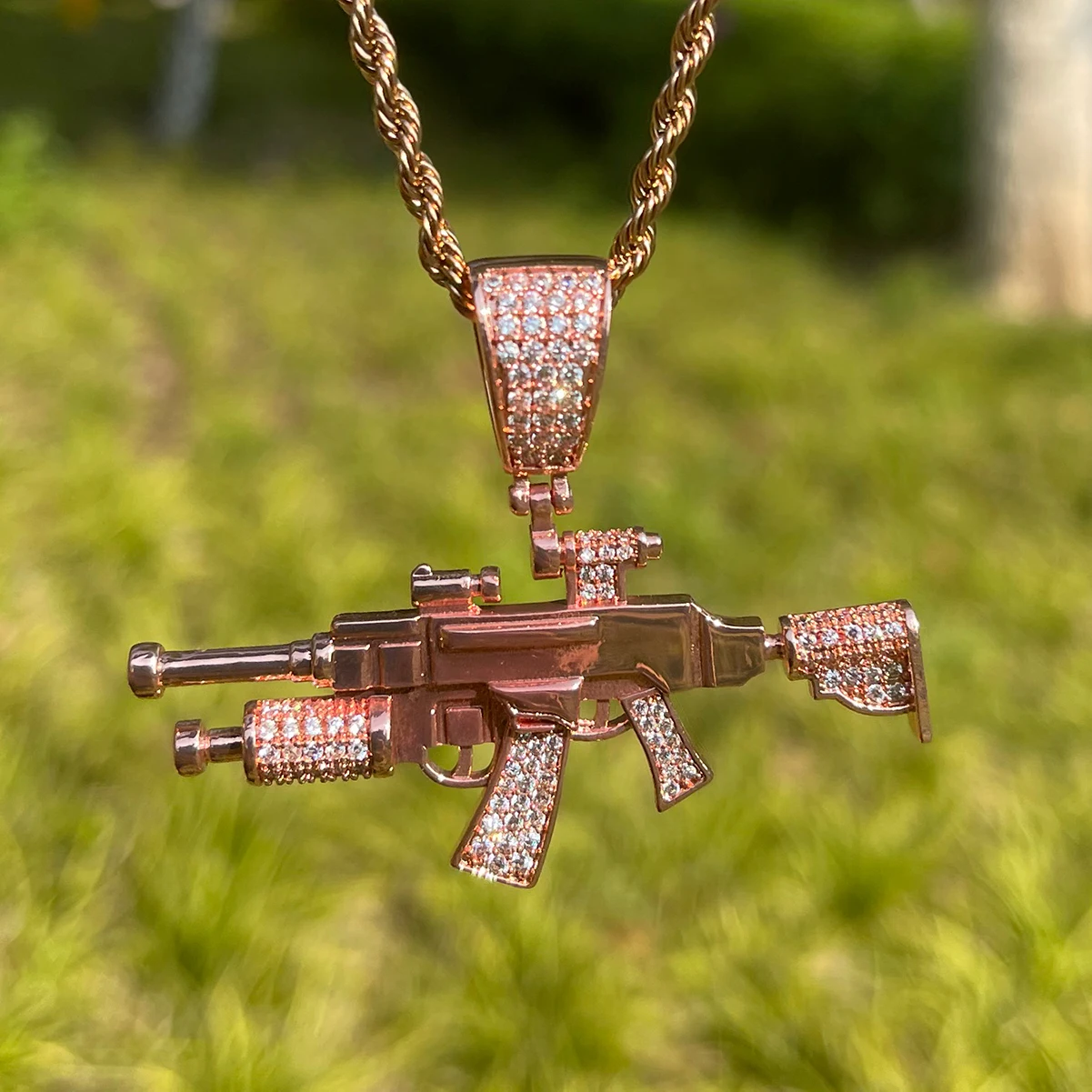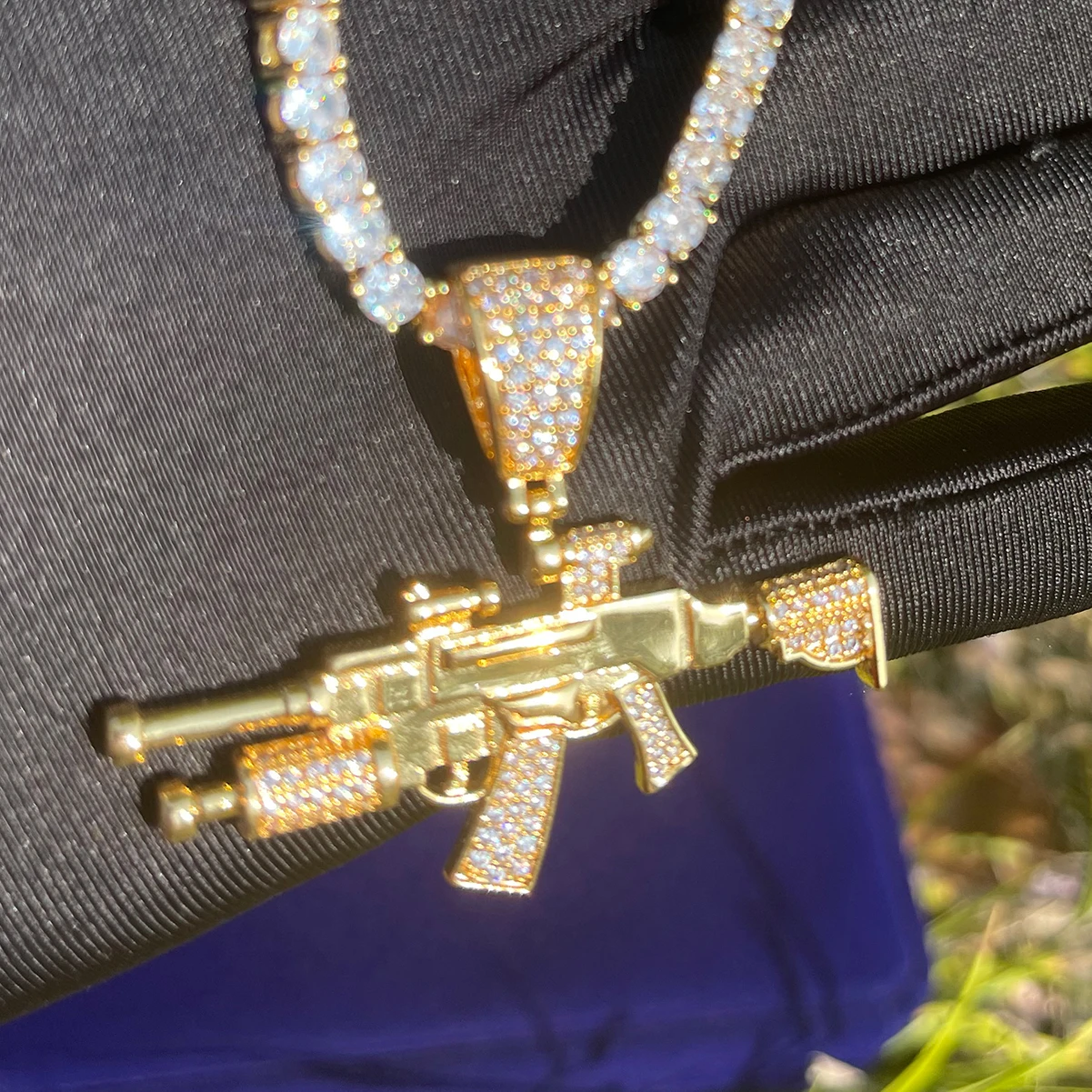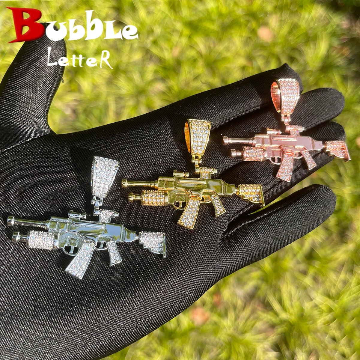Bubble Letter Iced Out Gang Pendant Women Real Gold Plated Cubic Zirconia Hip Hop Jewelry Gift