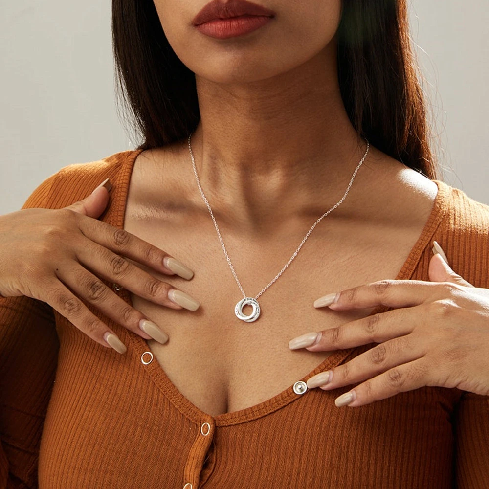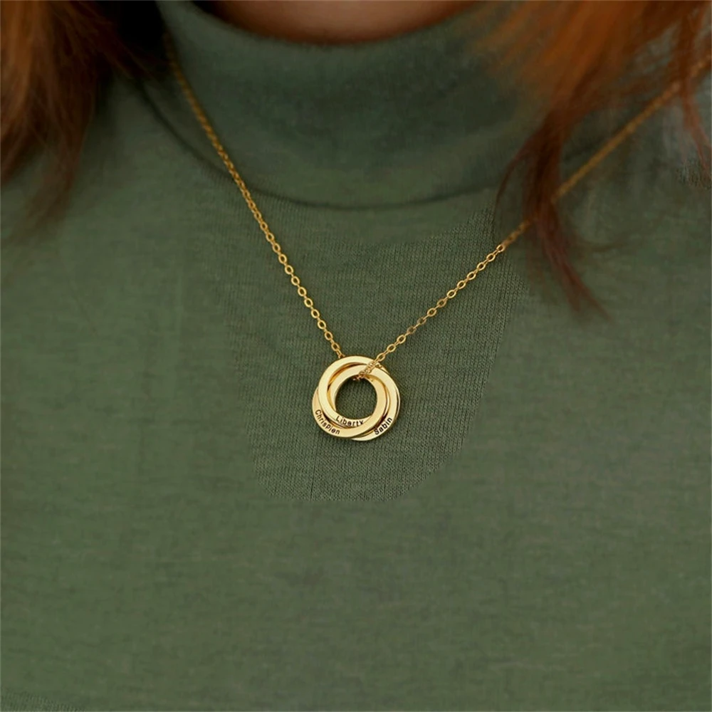 Custom Engraved Children’s Name Linked Circle Necklace – Russian Ring Interlocking Gift