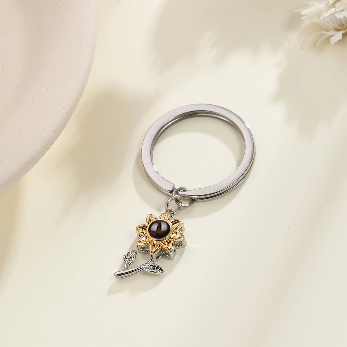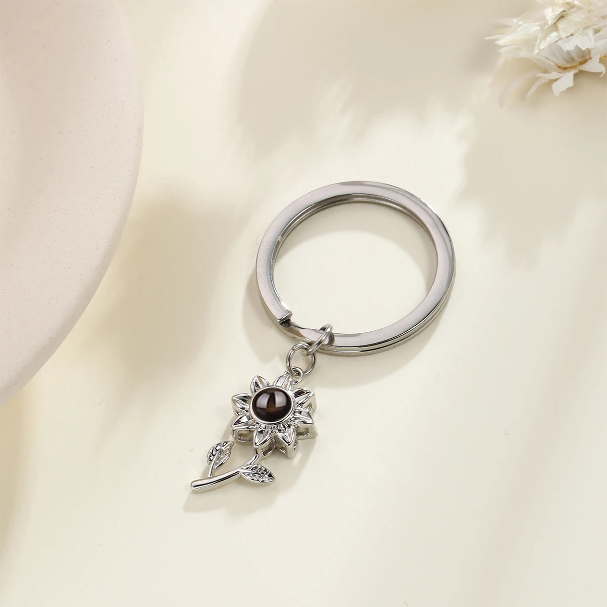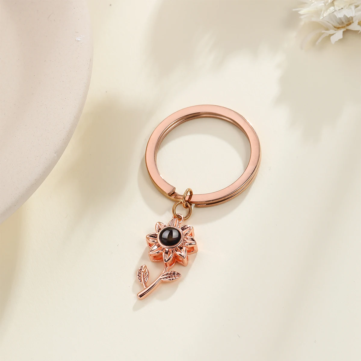 Custom Photo Projection Keychain – Personalized Flower Gift for Her