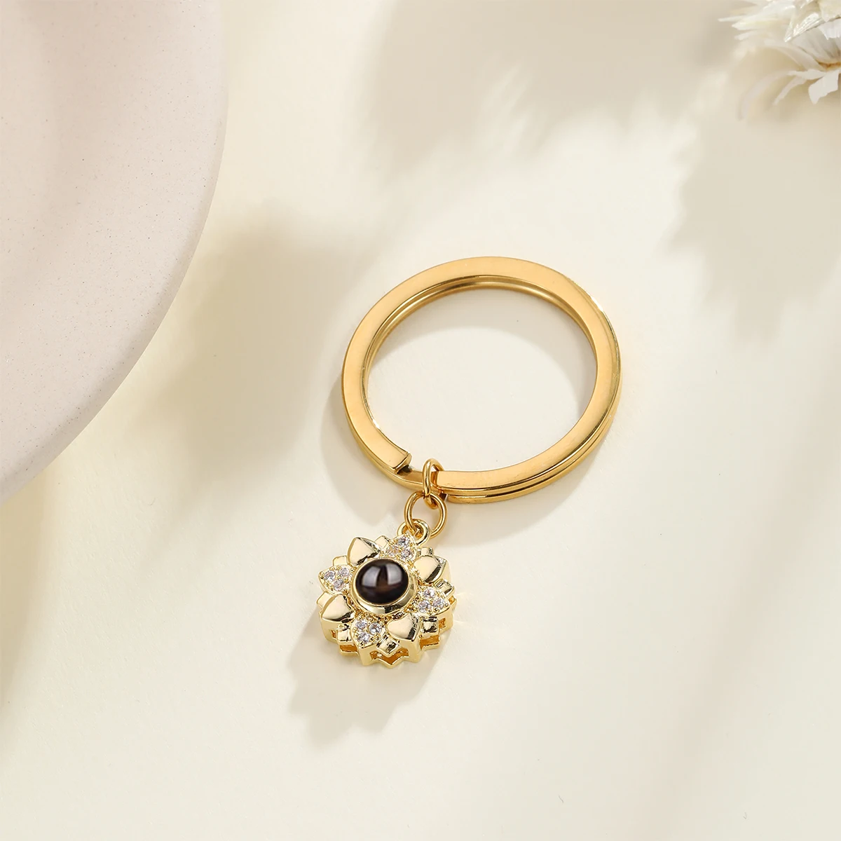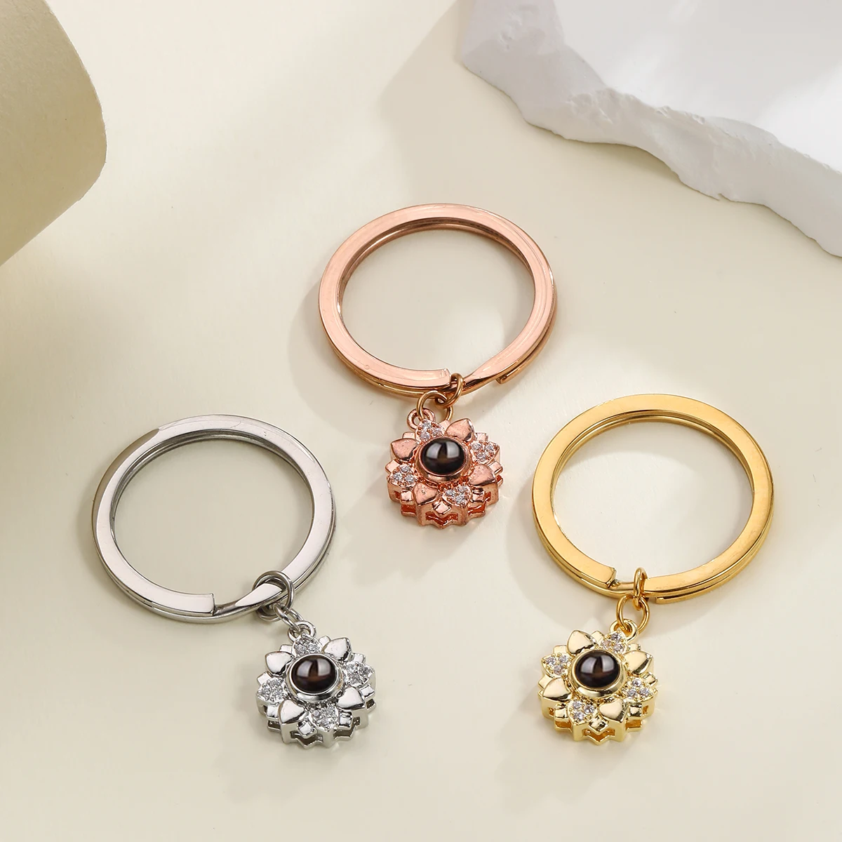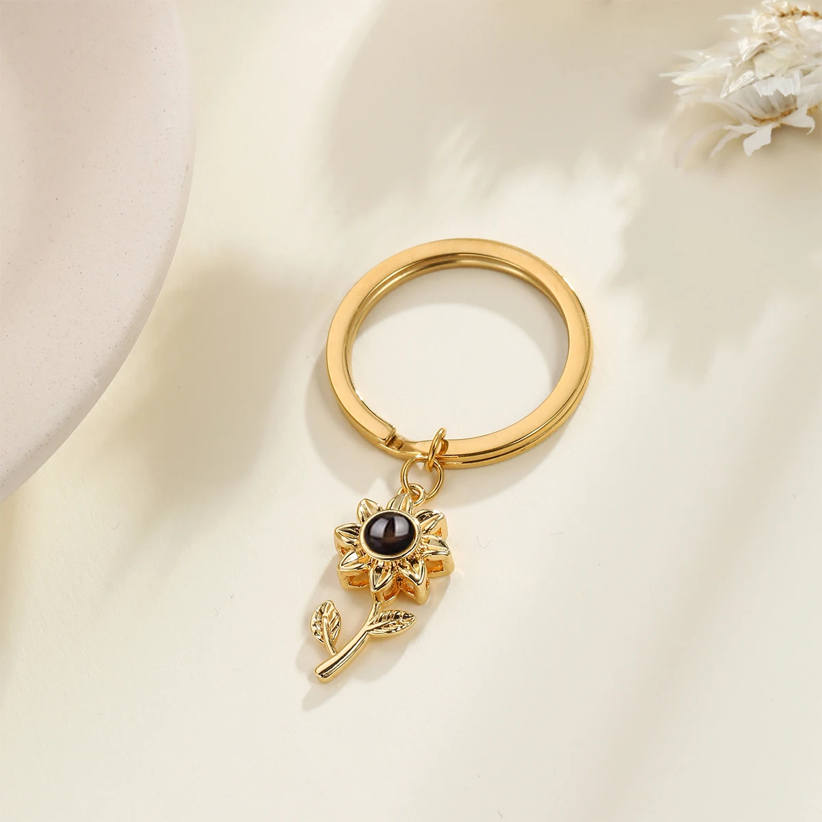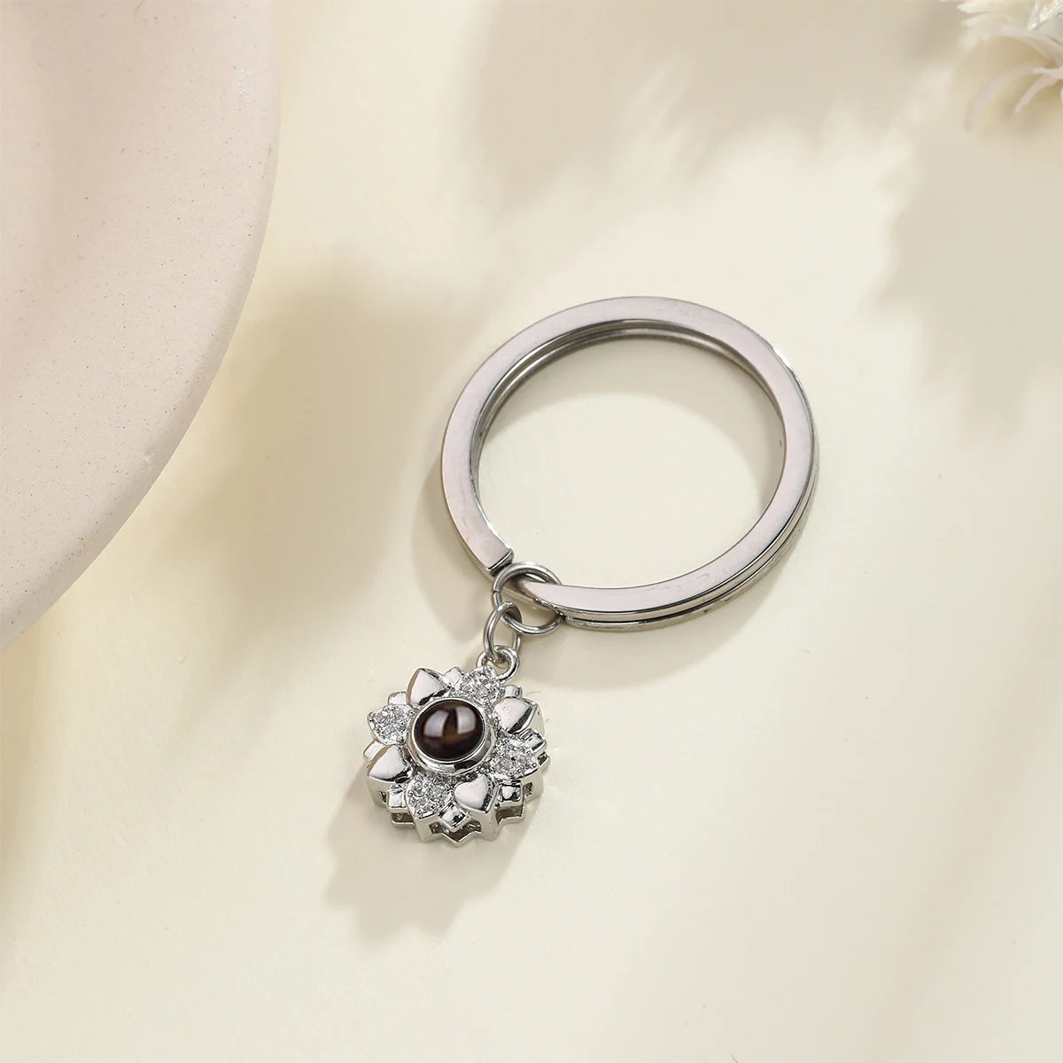 Custom Photo Projection Keychain – Personalized Flower Gift for Her
