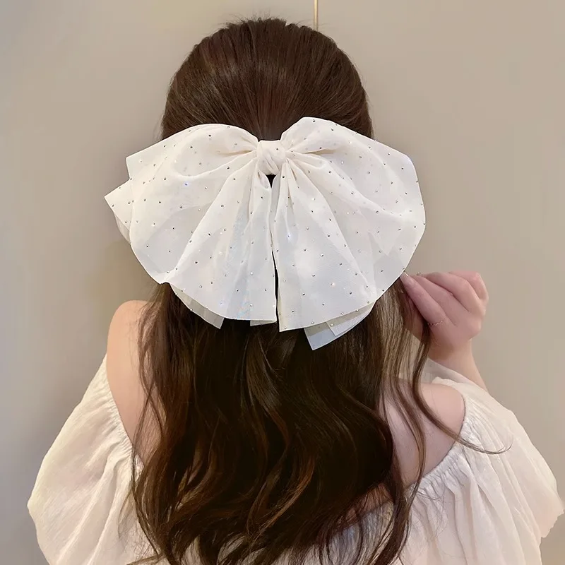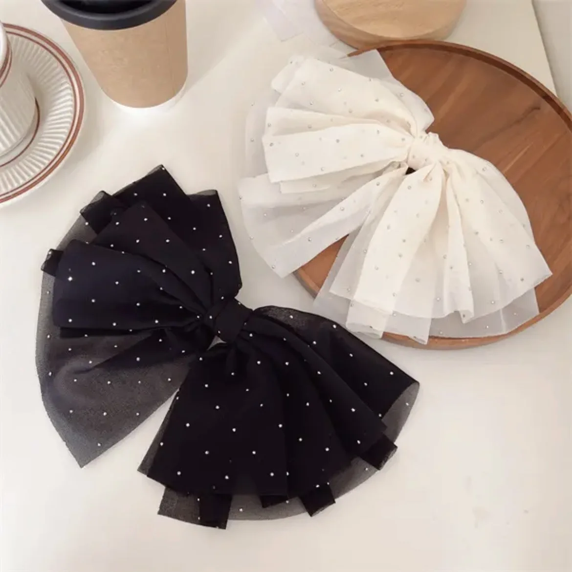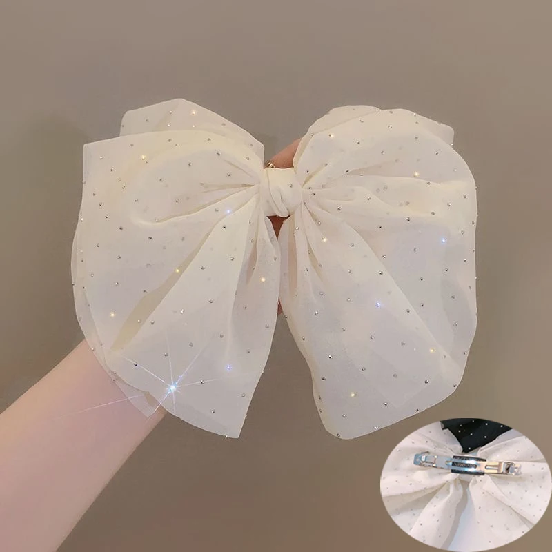 Elegant Rhinestone Mesh Bow Duckbill Clip – Chic Hairpin for Women