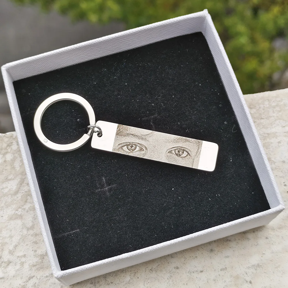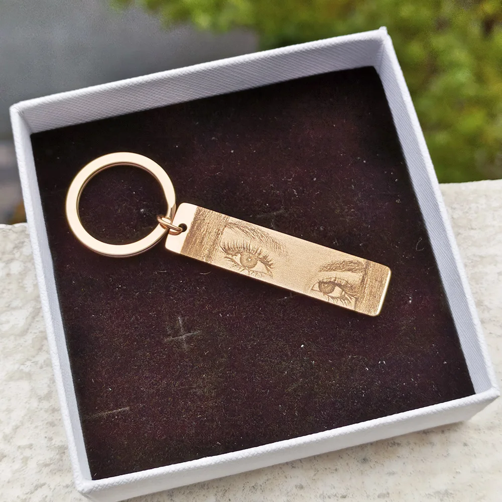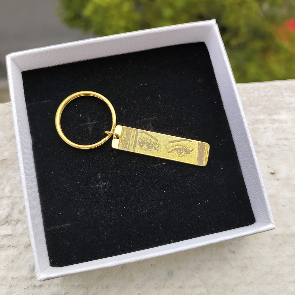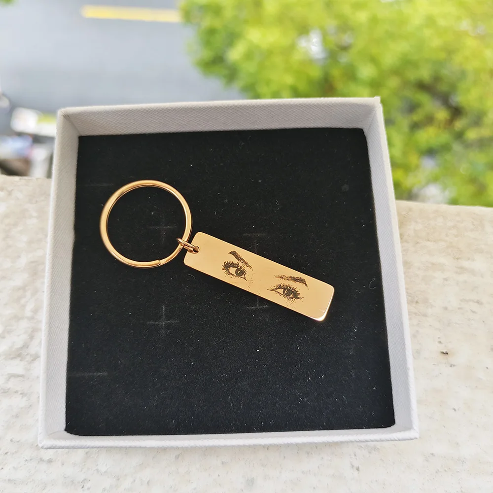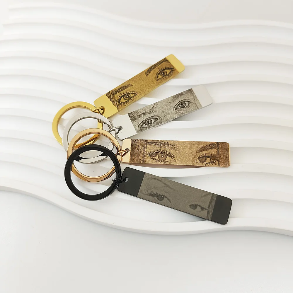 Name: Customized Eyes Photo Couple Key Chain Laser Engraved Eyes Photo Key Chain Stainless Steel Jewelry Gifts for Lover
