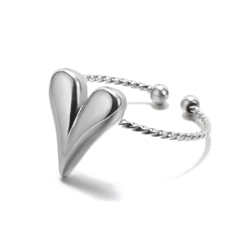 Gold Heart Couple Rings – Stainless Steel Anniversary Wedding Jewelry