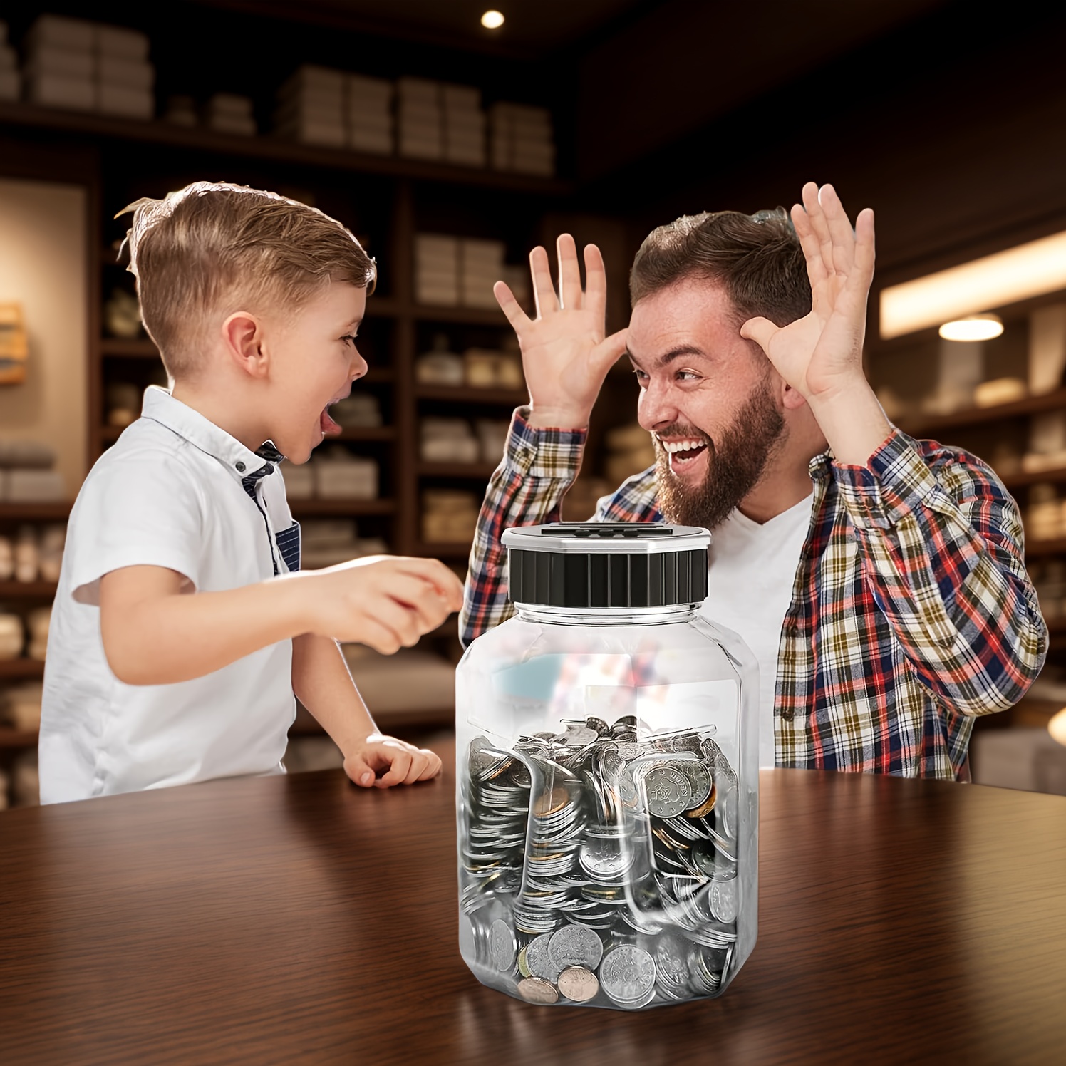 Created to accommodate all US coins: With a large capacity of 2.4 liters, this digital coin counting jar can hold over 2000 coins. This piggy bank for adults accepts every type of US coin and operates on 2 AAA batteries (not included).