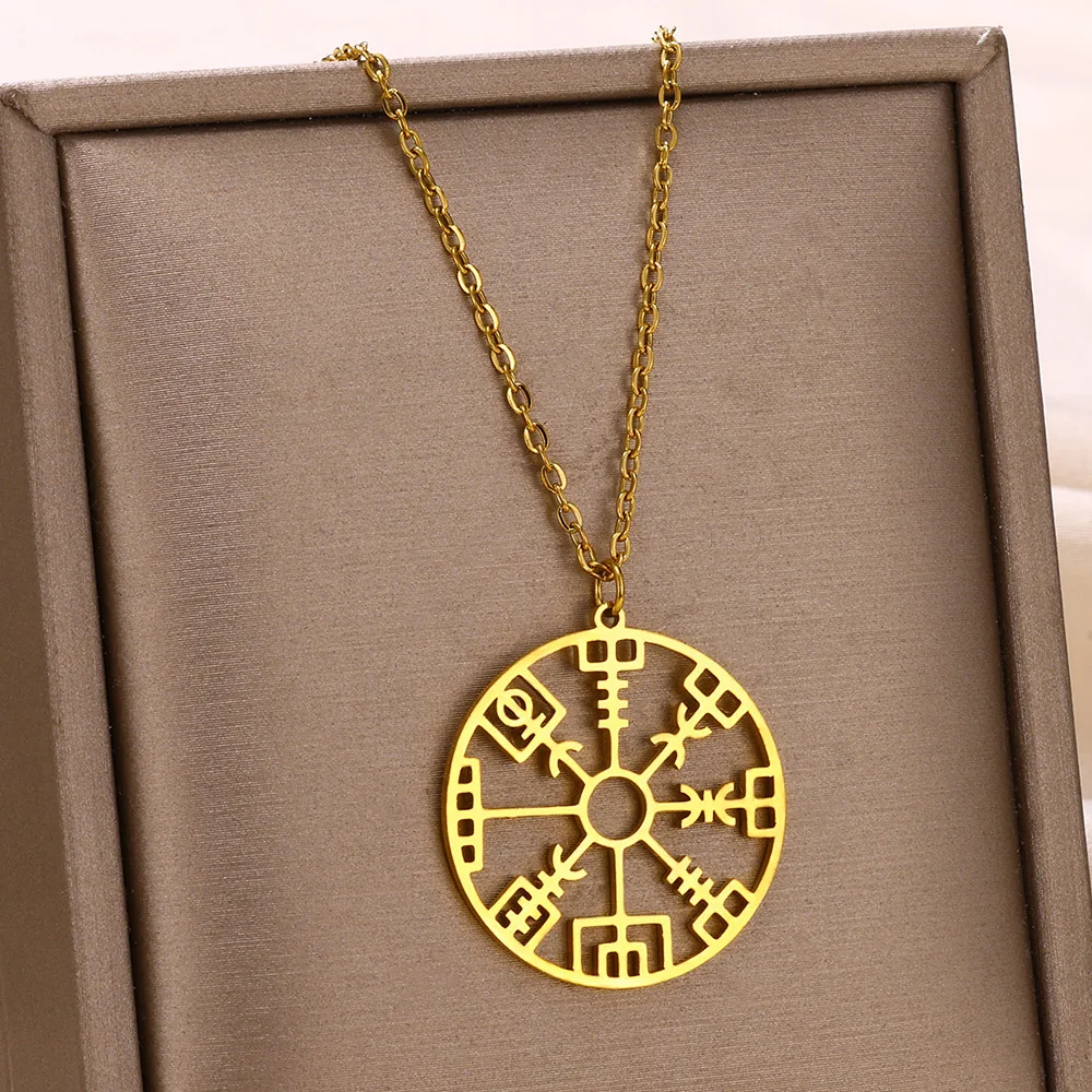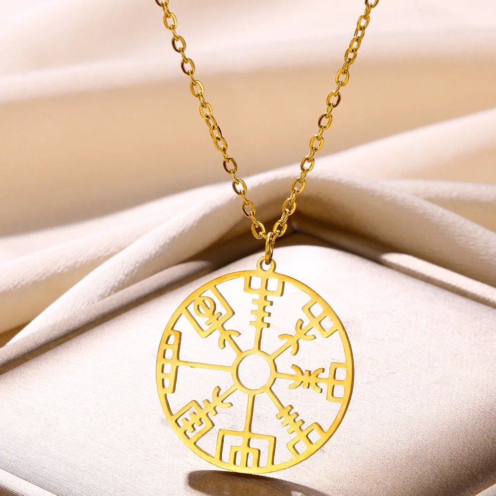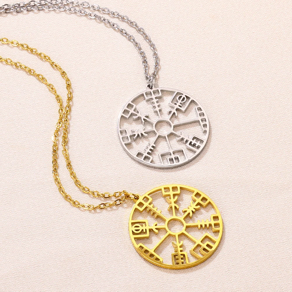 Types of: Fashion, Y2K;Exquisite, Punk;Viking Talisman Necklace – Compass Necklace, Wayfinder Jewelry, Vegvisir Necklace,Silver Protection Amulet Fashion Woman