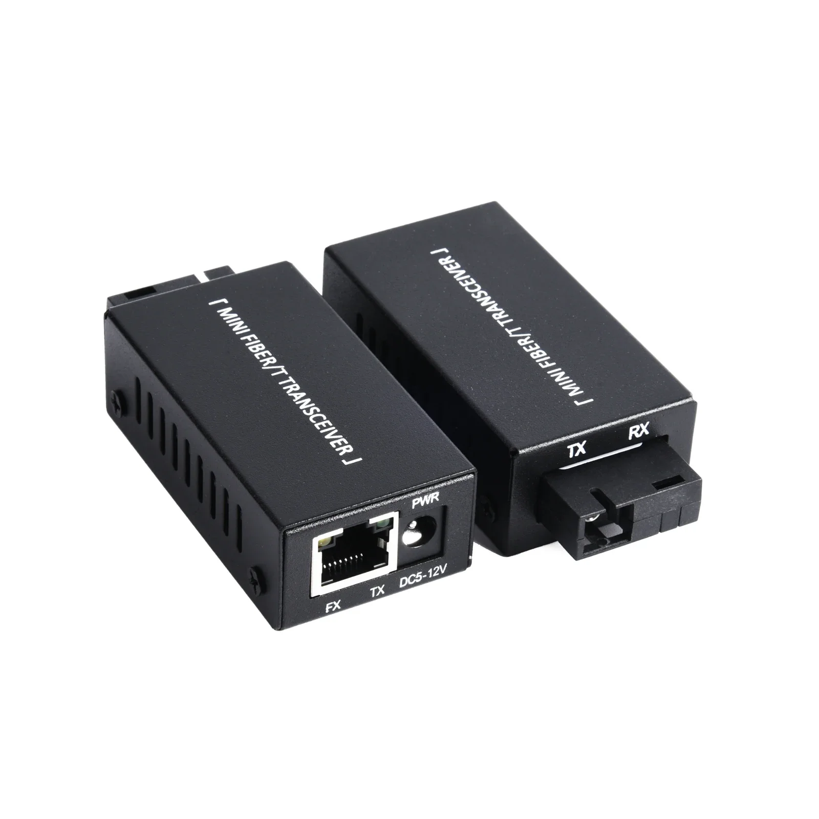 1 Pair Mini Gigabit Fiber Media Converter 100/1000Mbps Fiber Transceiver SC to RJ45 Ethernet Switch 20Km with Power Adapter