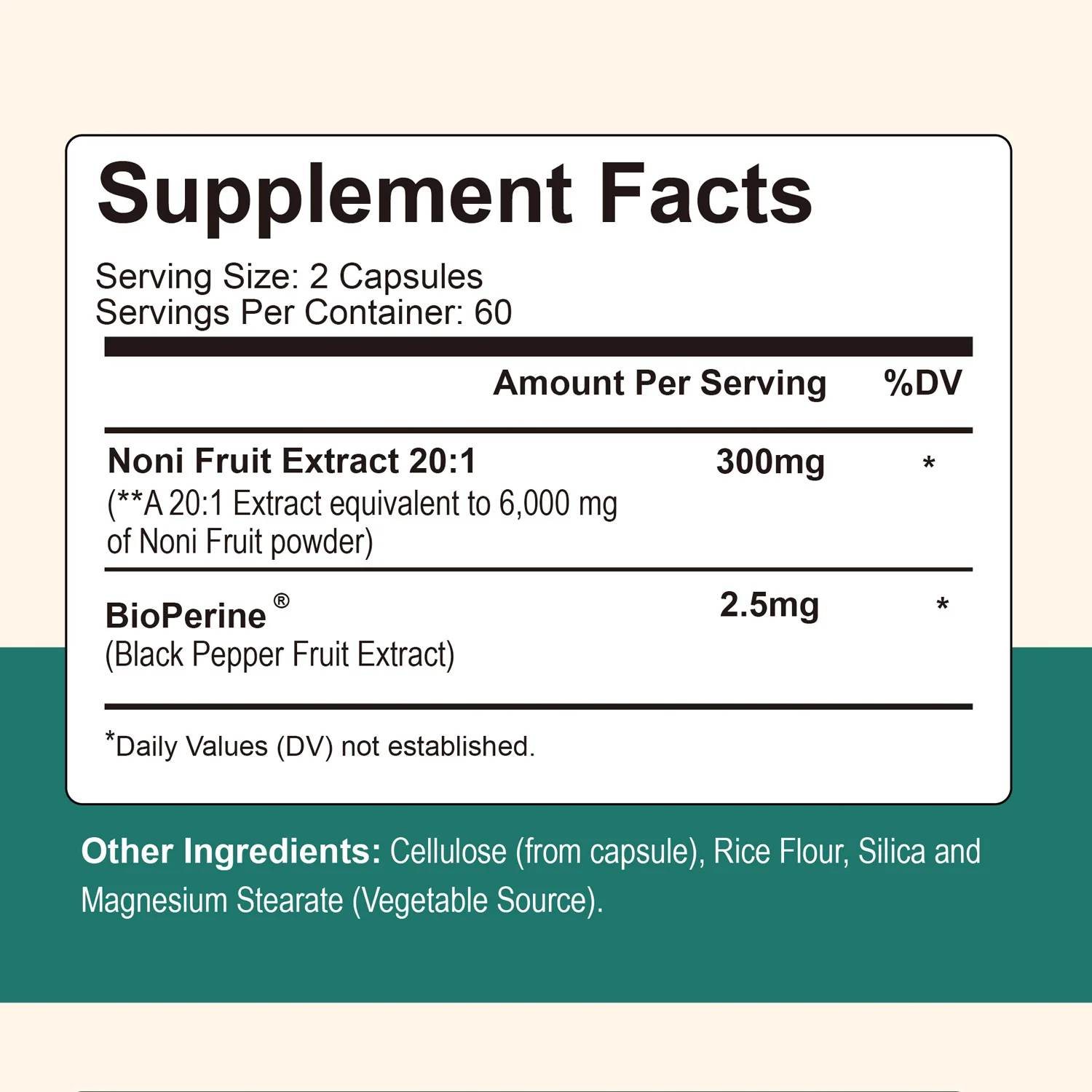 Ingredients: Noni Fruit Extract, BioPerine