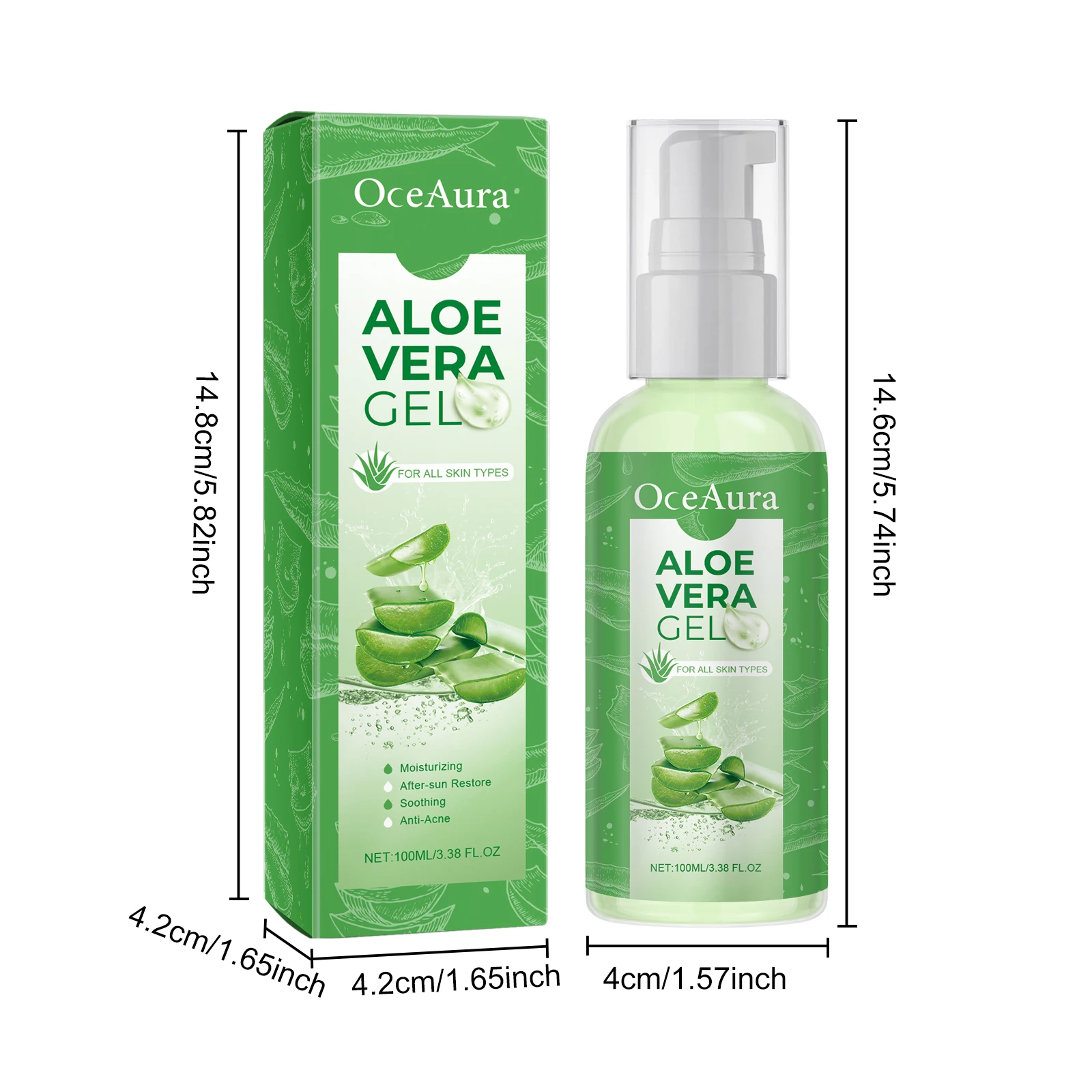 Oceaura Aloe Vera Gel Summer Skin Care Relief Discomfort Repair Damaged Skin Moisturize Reduce Irritation Soothing Aloe Vera Gel