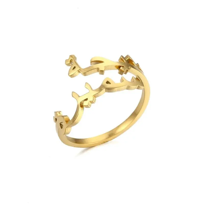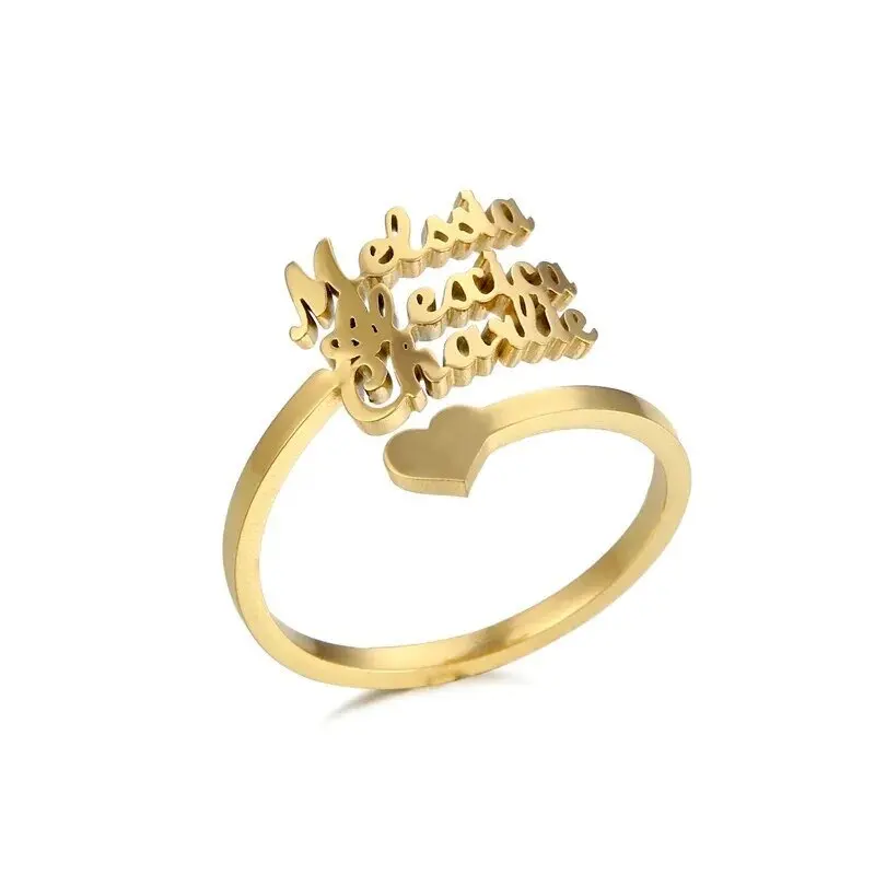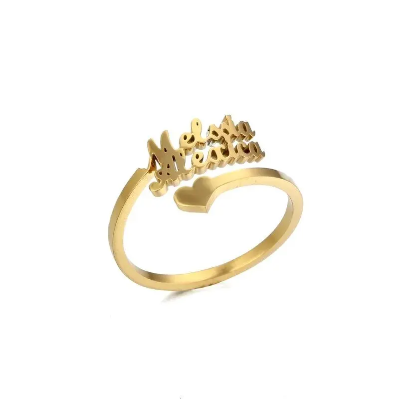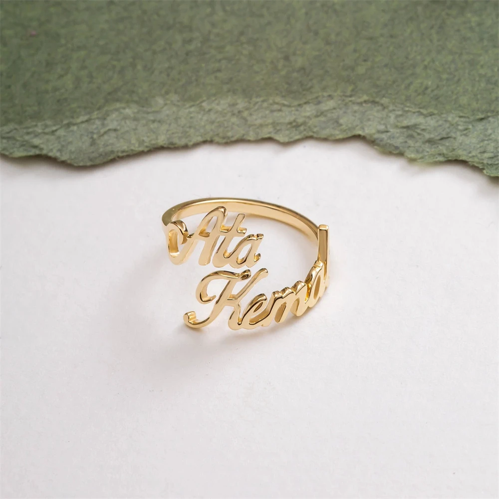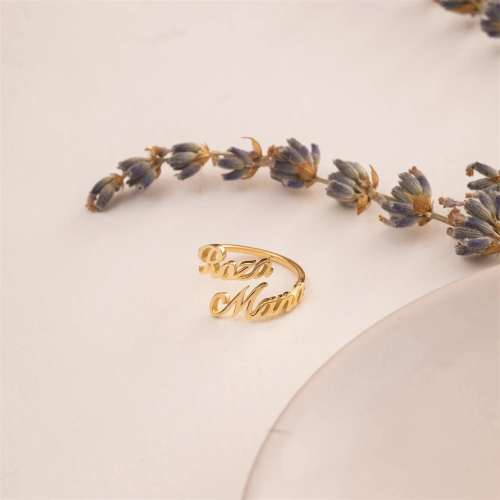Personalized Adjustable Double Name Ring – Stainless Steel Wedding Gift