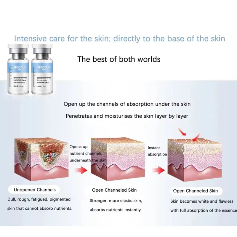 The molecular structure of placenta is close to the human fast penetration and absorption of collagen to increase the elasticity of the skin, repair the dry lines of the night.