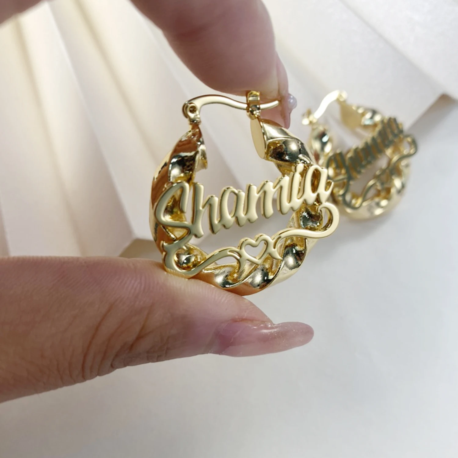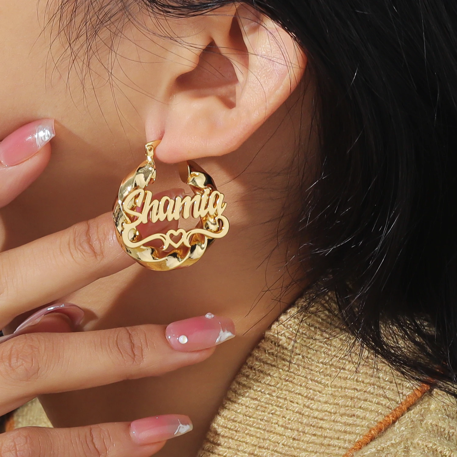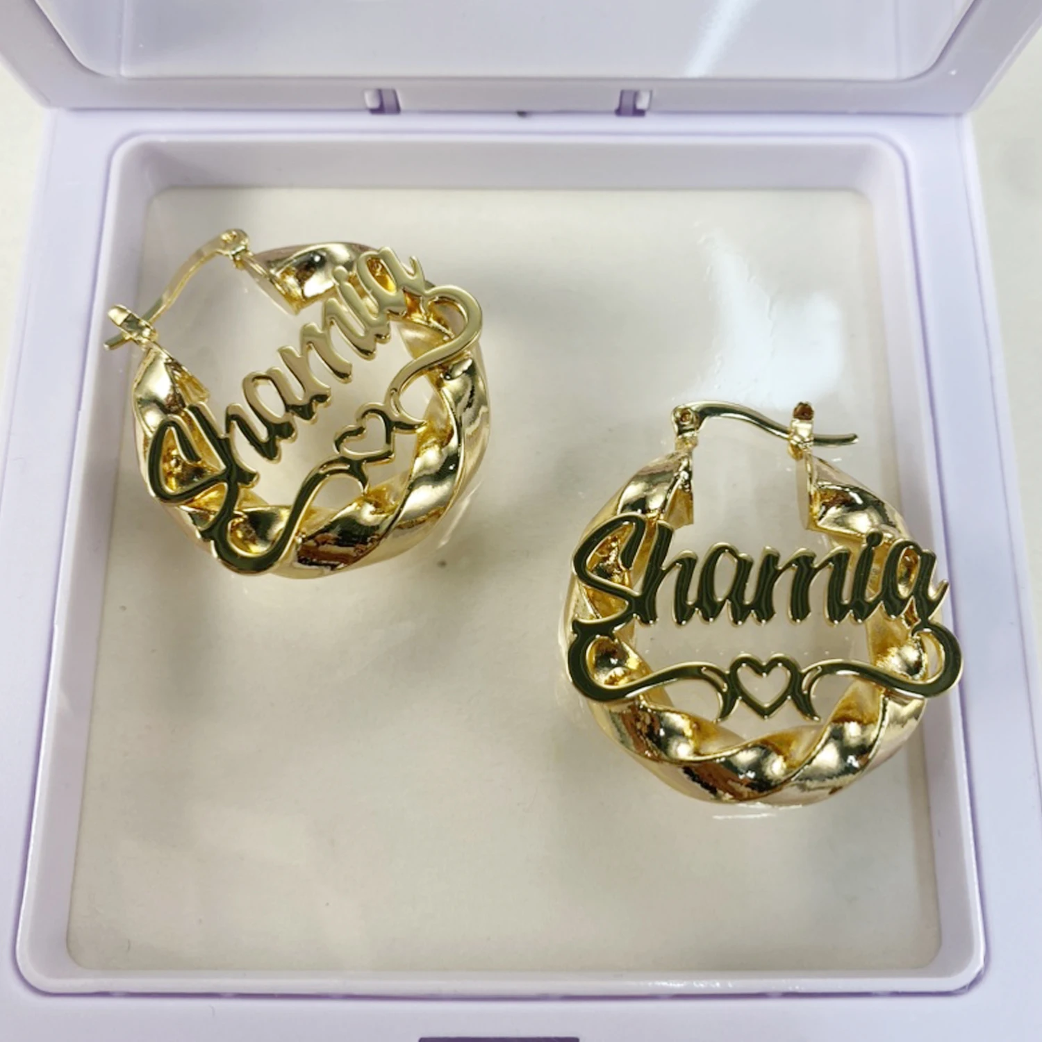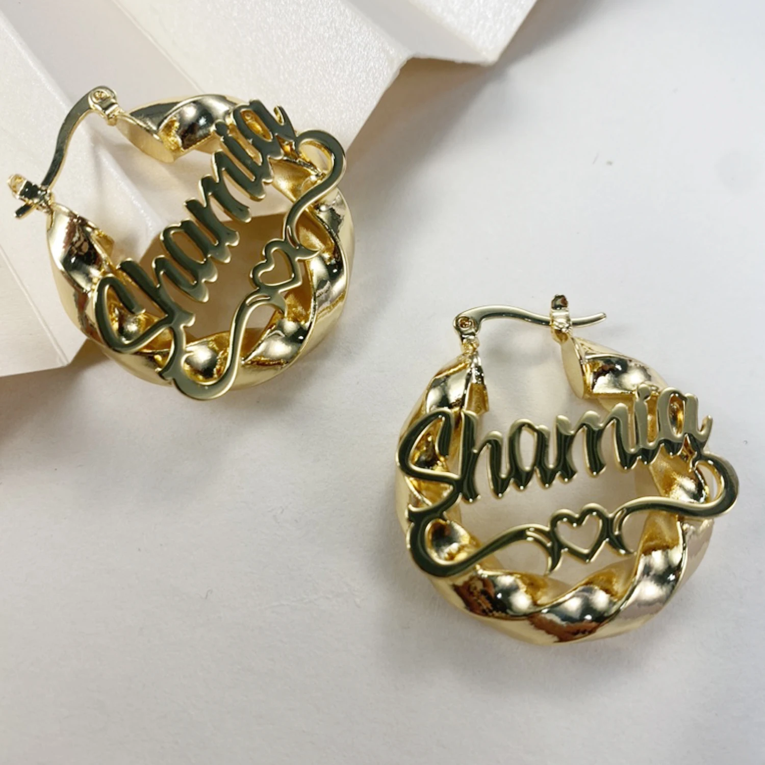 Express your individuality with these custom name hoop earrings, beautifully designed with a heart accent below the name for an extra touch of elegance! These earrings are a perfect blend of fashion and personalization, making them a must-have accessory for any occasion.