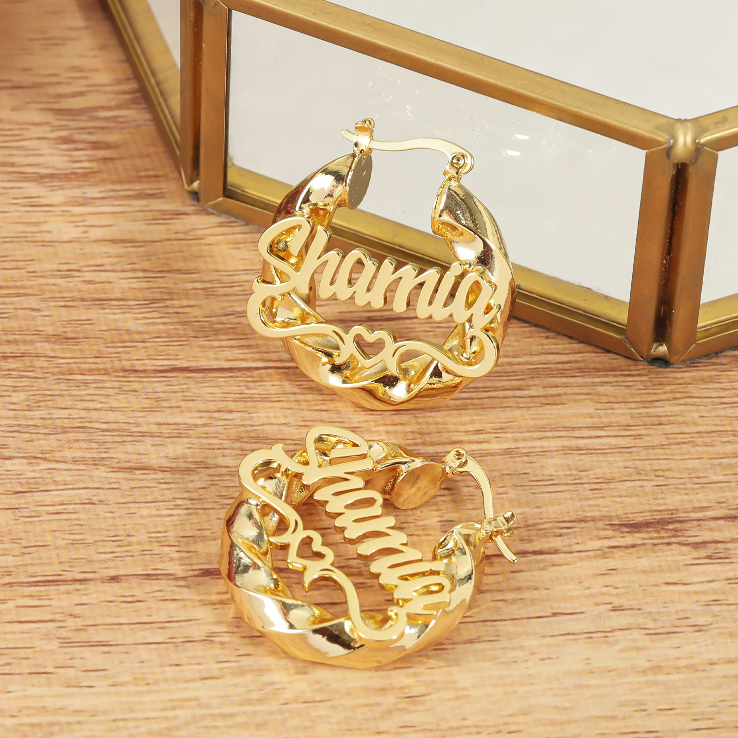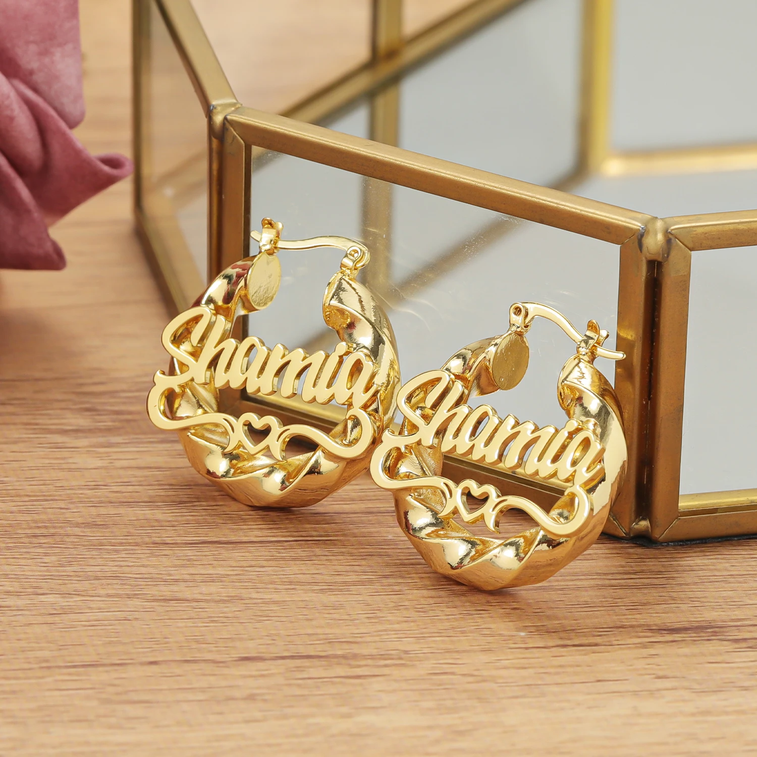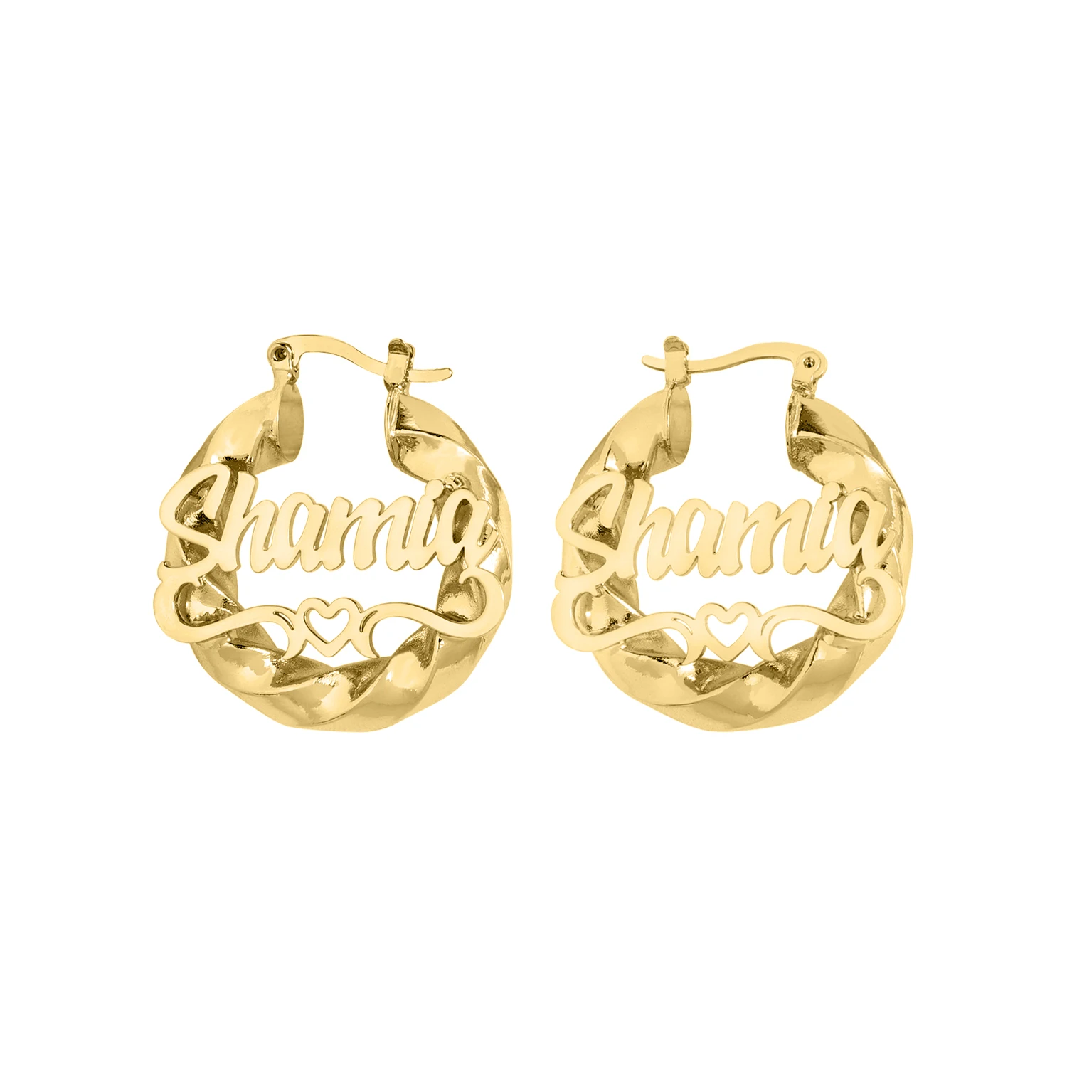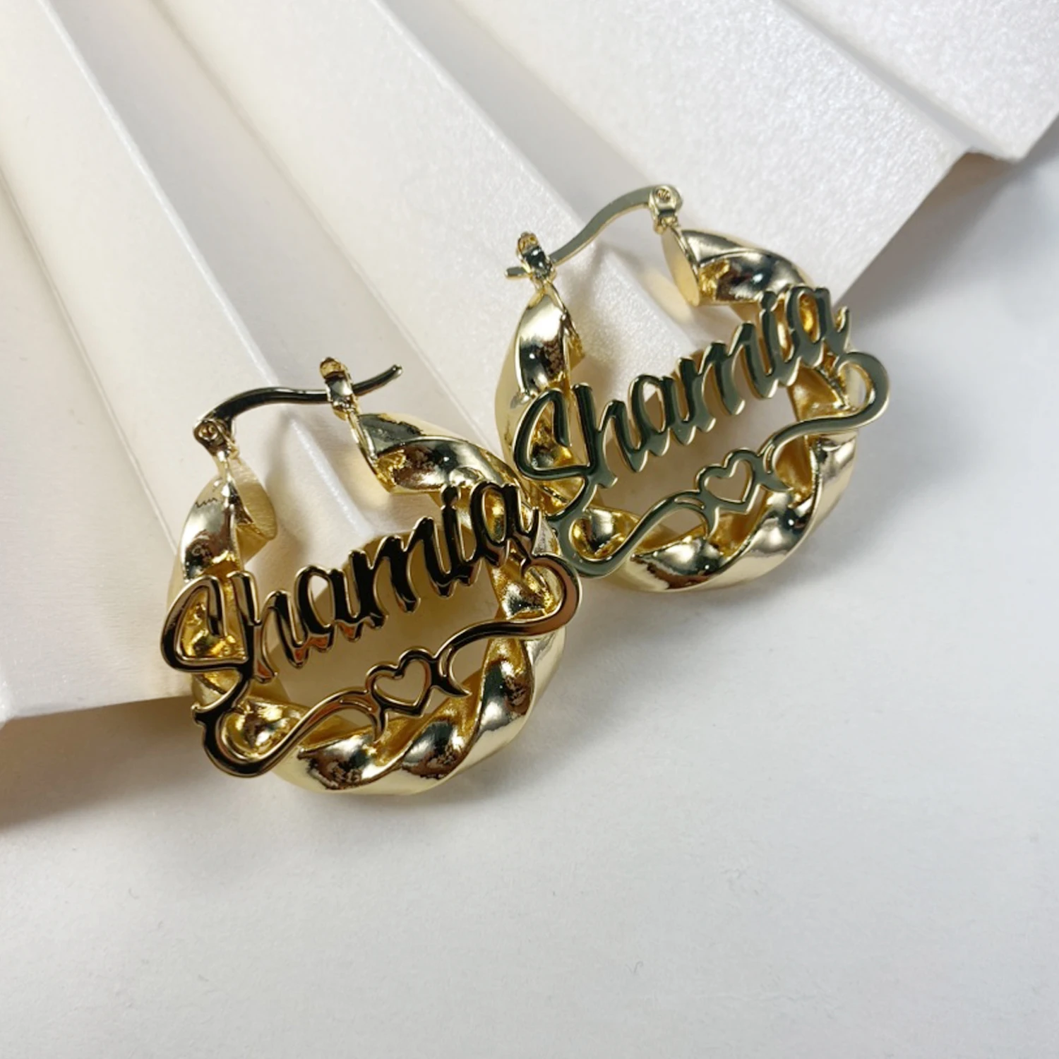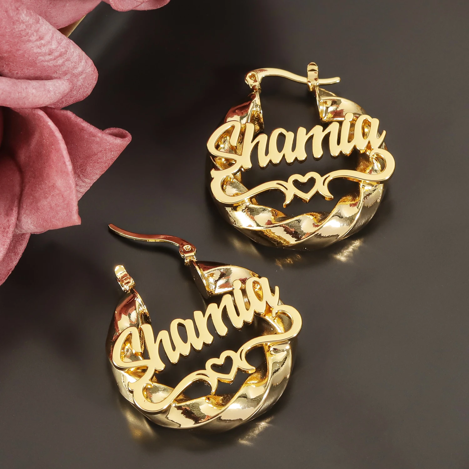 Express your individuality with these custom name hoop earrings, beautifully designed with a heart accent below the name for an extra touch of elegance! These earrings are a perfect blend of fashion and personalization, making them a must-have accessory for any occasion.