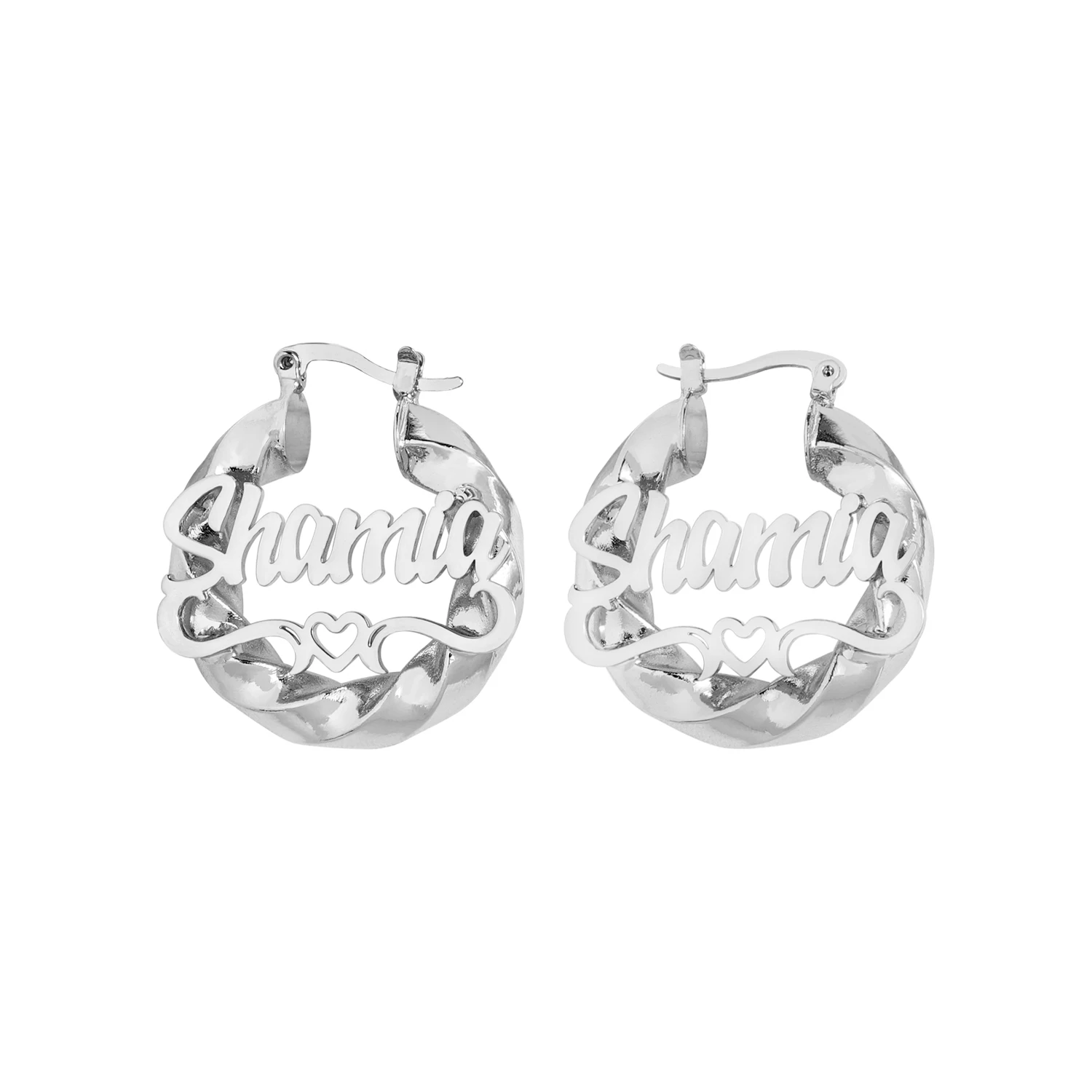 �� Earring Type: Hoop earrings with a custom name & heart charm