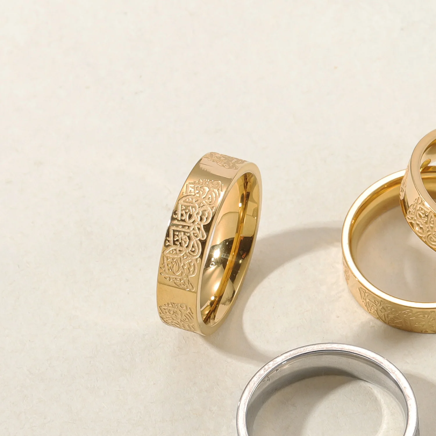 One of the most relieving promises from the Qur'an, this ring is meant to hold during all of life's tests and trials. "With hardship comes ease" is engraved in Arabic calligraphy all along the outer edge of this timeless band.