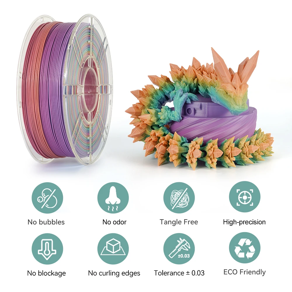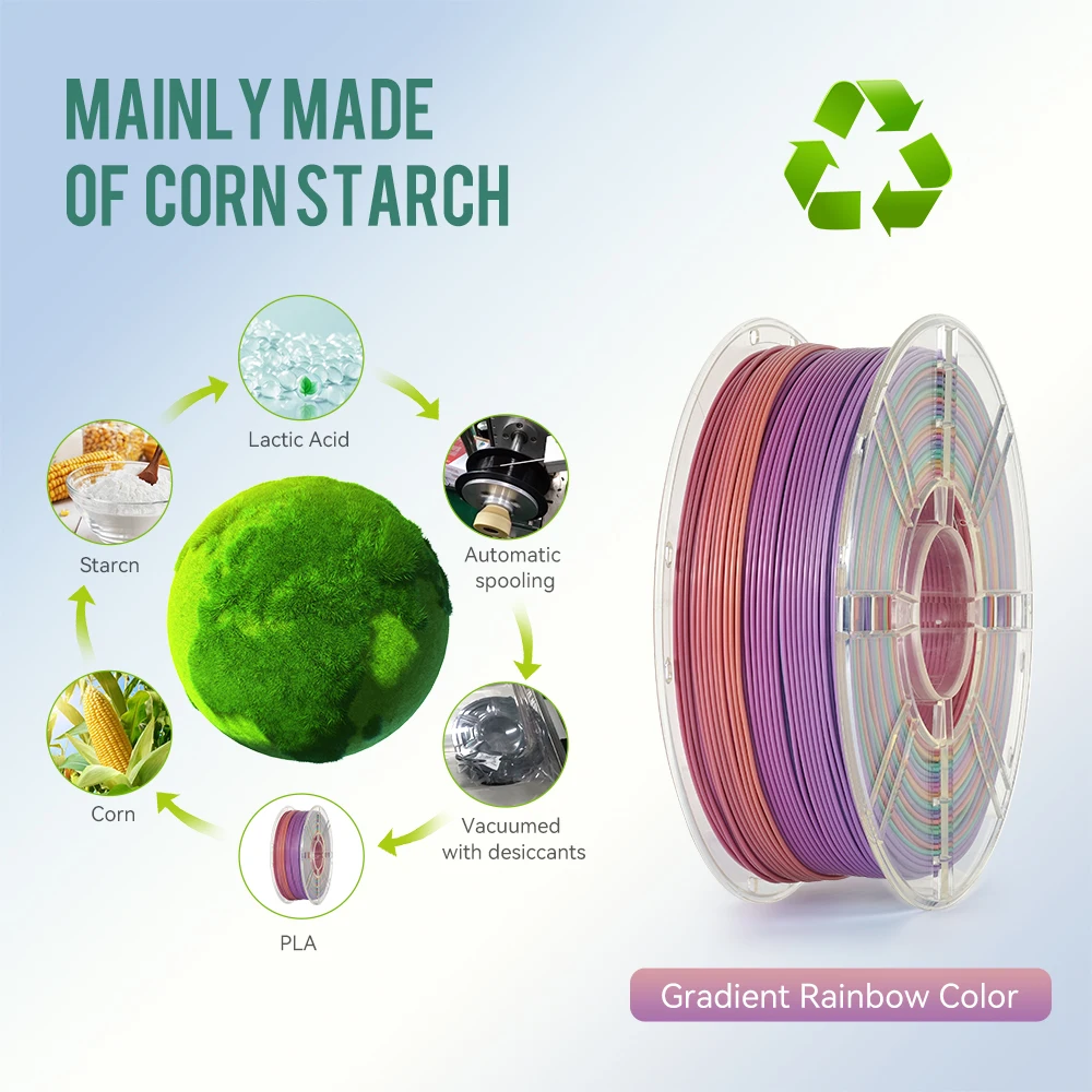 Rainbow PLA Filament 1.75mm Color Changing for 3D Printing High Speed 30-600mm/s