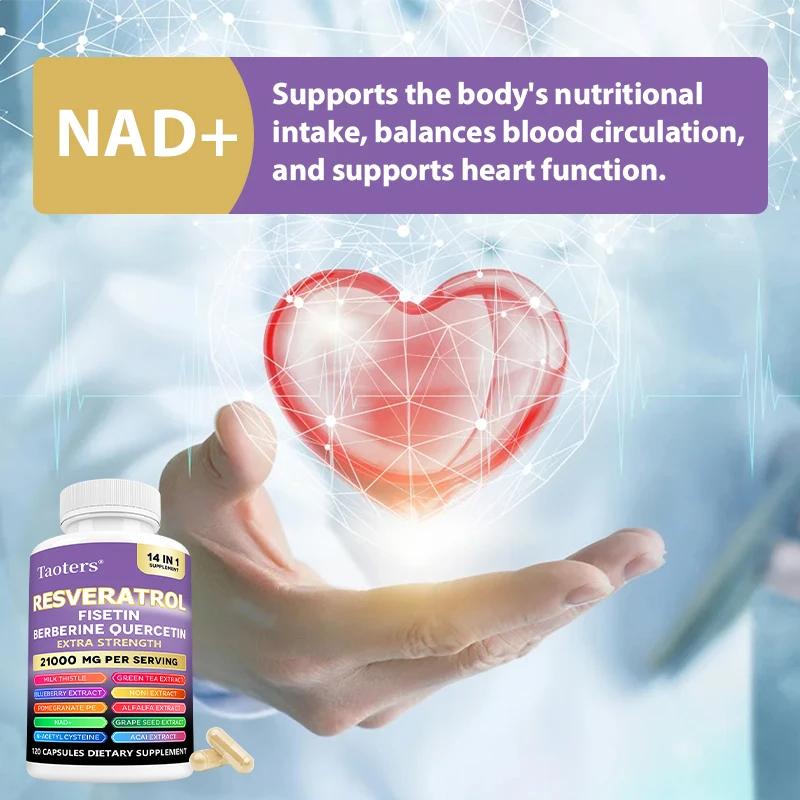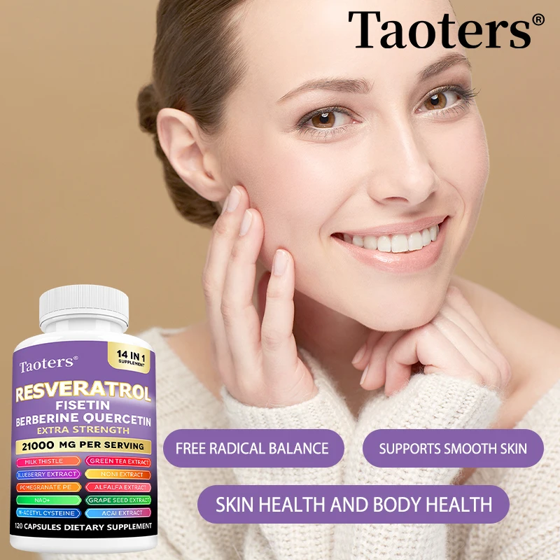 It contains complete resveratrol berberine, quercetin supplement, grape seed extract capsules, acai extract, noni fruit extract, blueberry extract, alfalfa extract, and pomegranate.