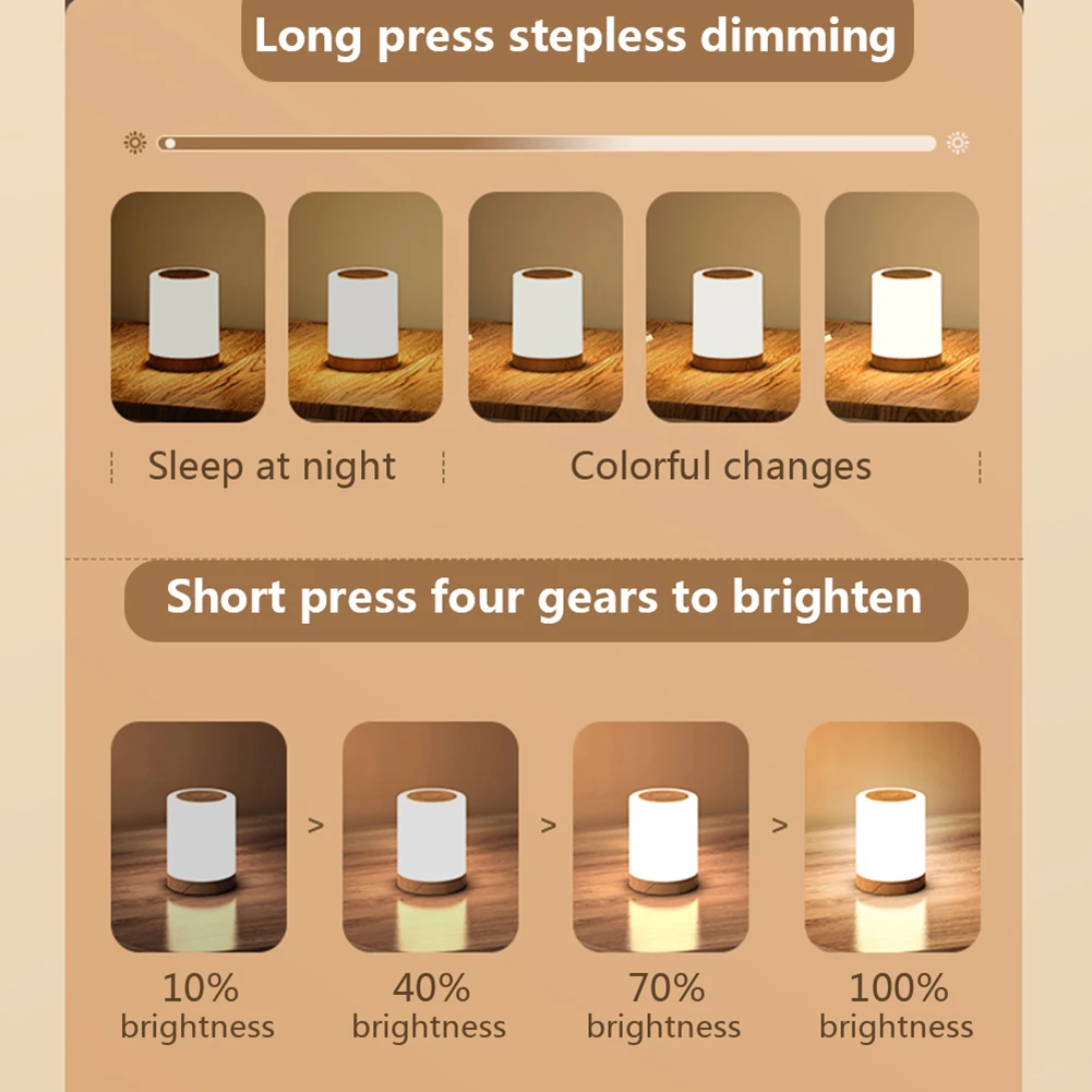 2. Adjustable Brightness: Tailor your lighting experience with three brightness levels of this bedside table lamp, including a smooth, continuous dimming feature. Simply press and hold the dimming button to adjust the luminosity to your preferred setting, creating the perfect ambiance for any occasion.