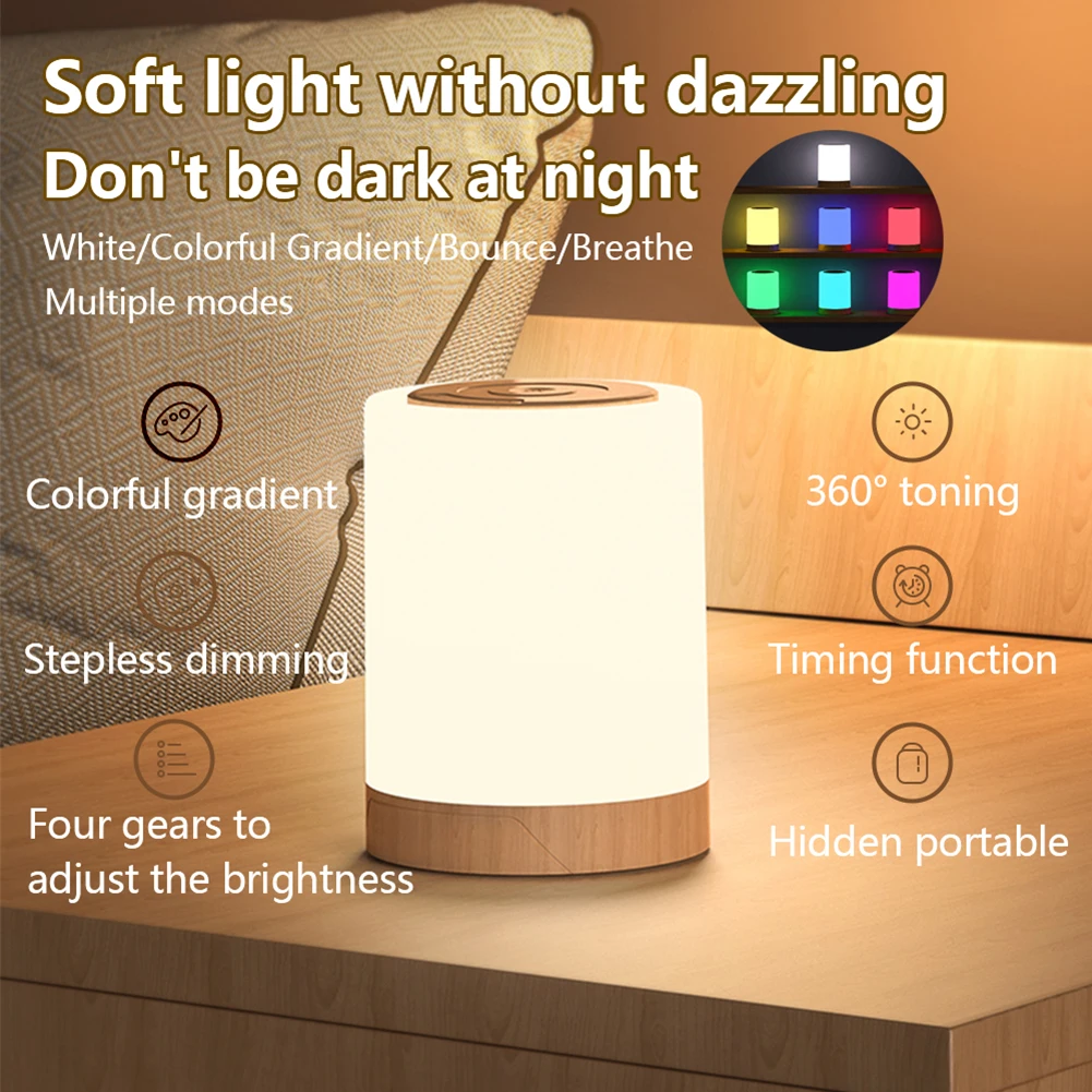 Bedside Table Lamp with Timer RGB Nightstand Lamp Touch Sensor Dimmable Modern Decorative Light for Bedroom Living Room
