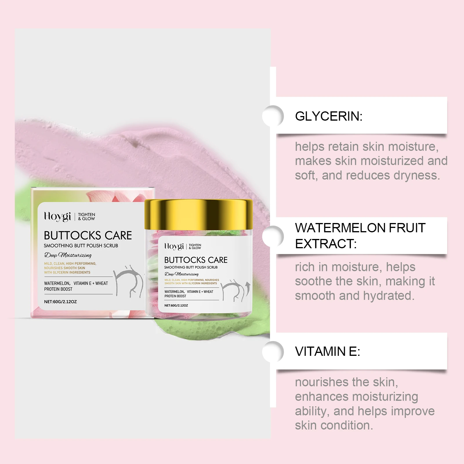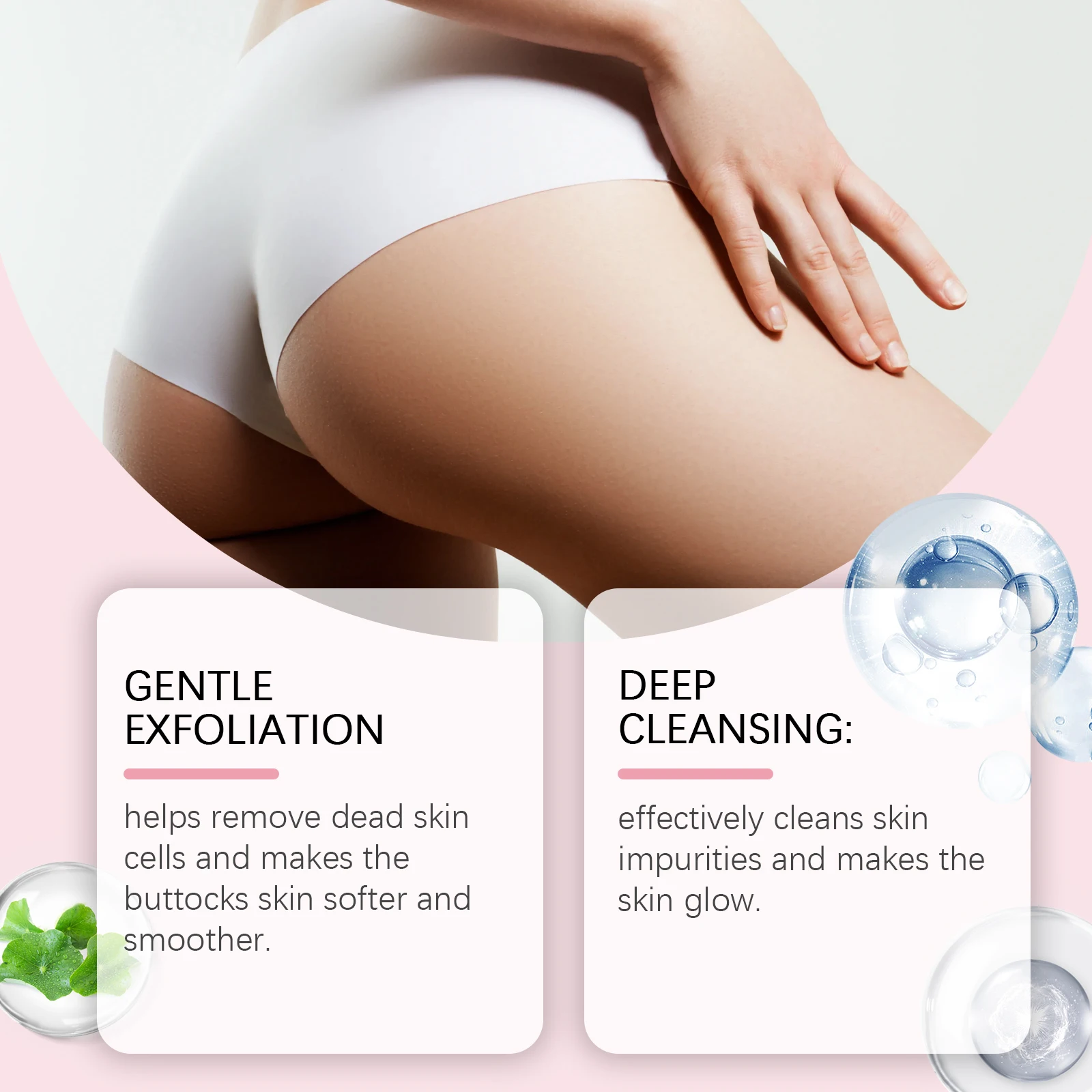 1. Gentle exfoliation: helps remove dead skin cells, helps improve roughness, makes the buttocks skin softer and smoother.