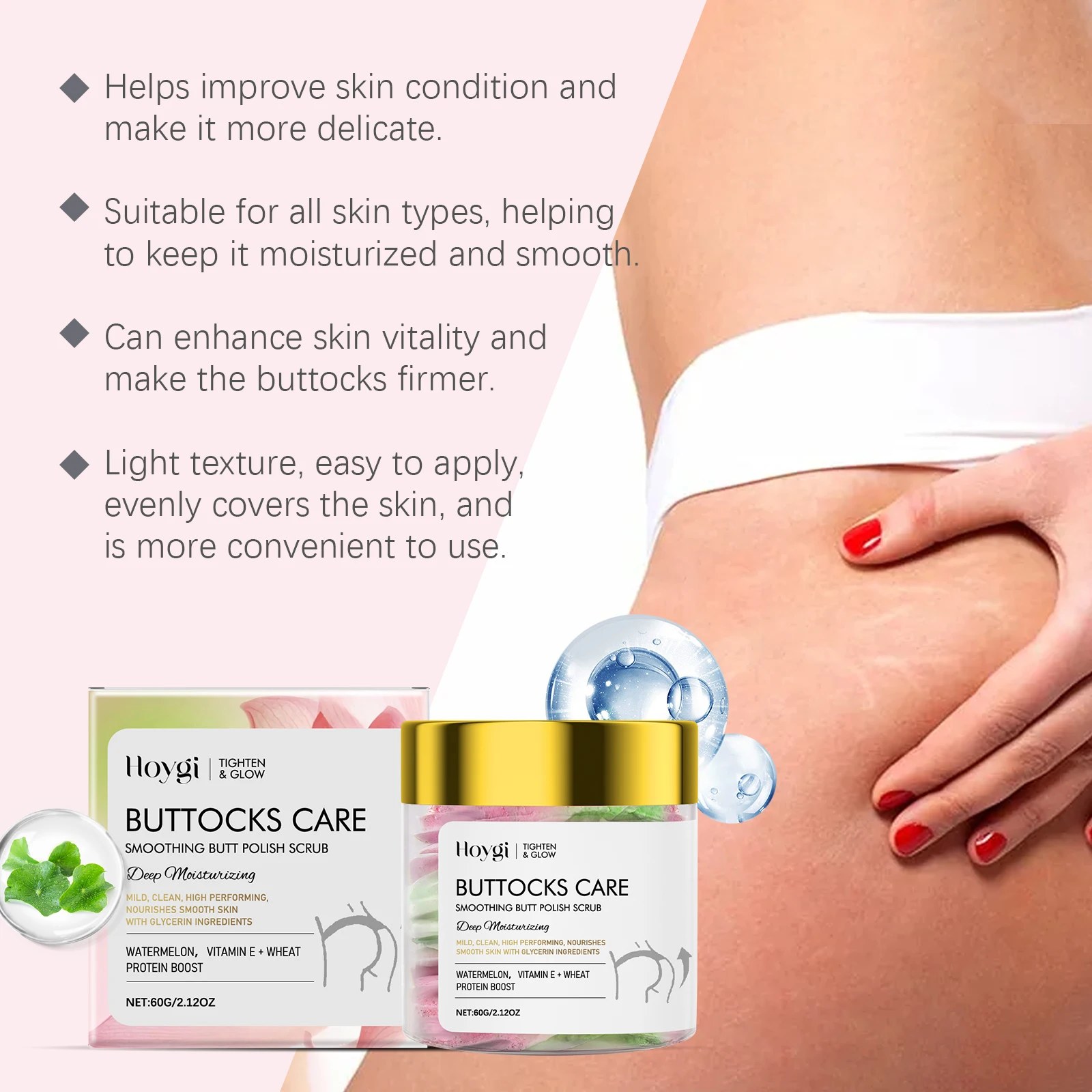 3. Firming and brightening: helps improve skin condition and makes the buttocks firmer and smoother.