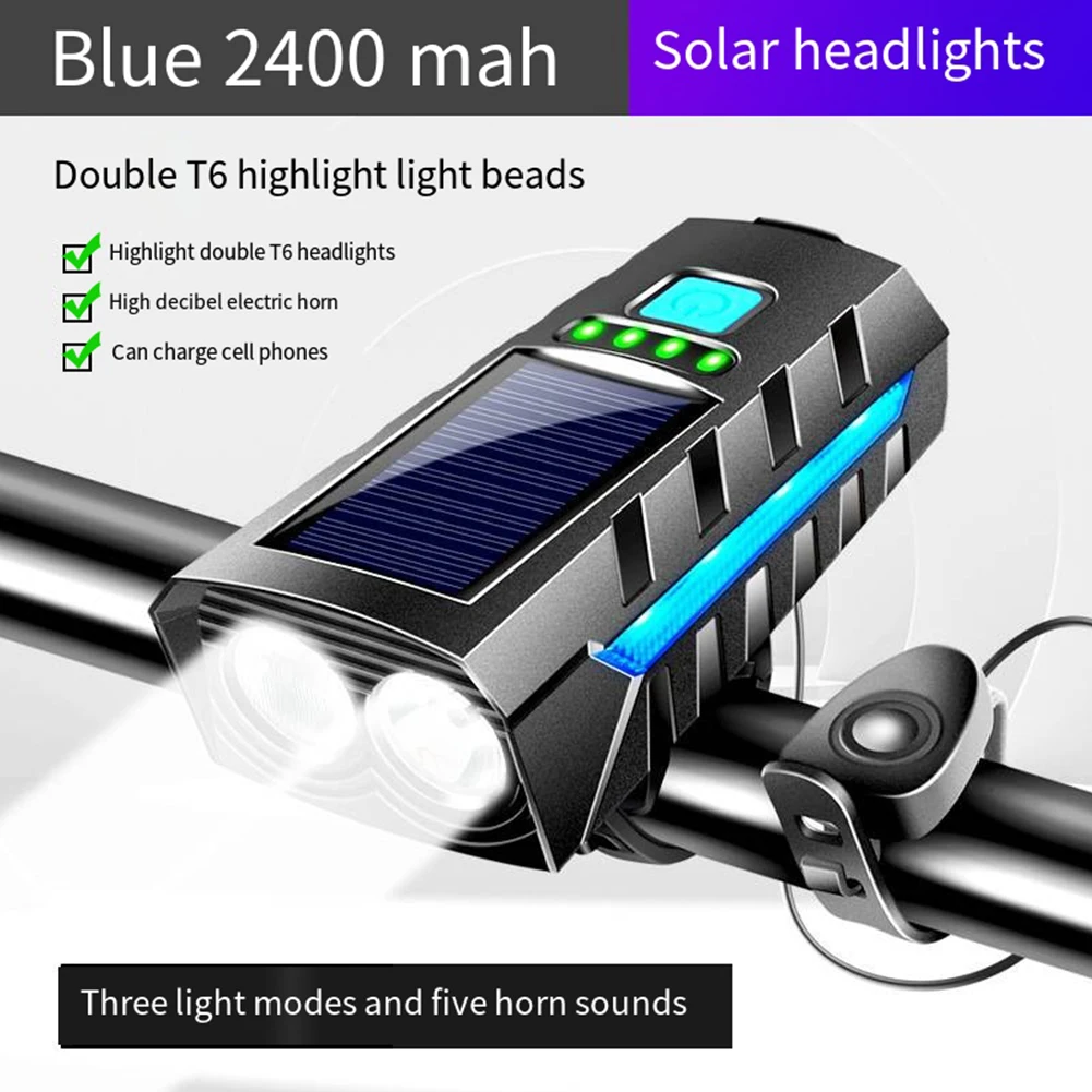 Solar LED Bicycle Light USB Rechargeable MTB Road Bike Front Lamp Power Display High Beam Bicycle Flashlight Bicycle Accessories