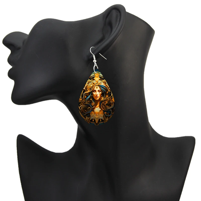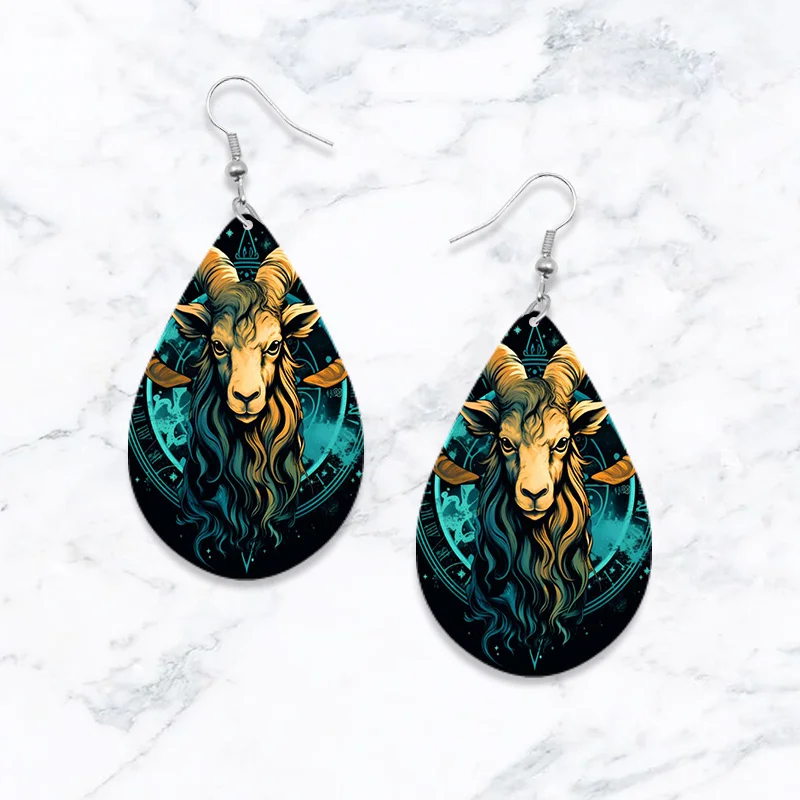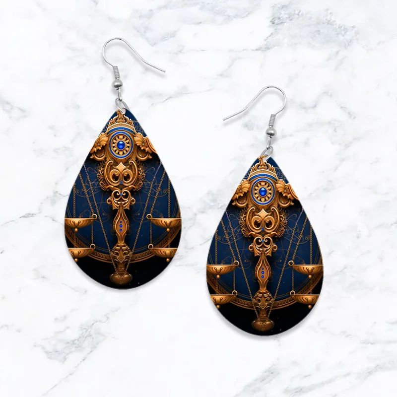 SOMESOOR Zodiac Wooden Teardrop Earrings – Leo, Libra, Scorpio Pendant Dangle Jewelry