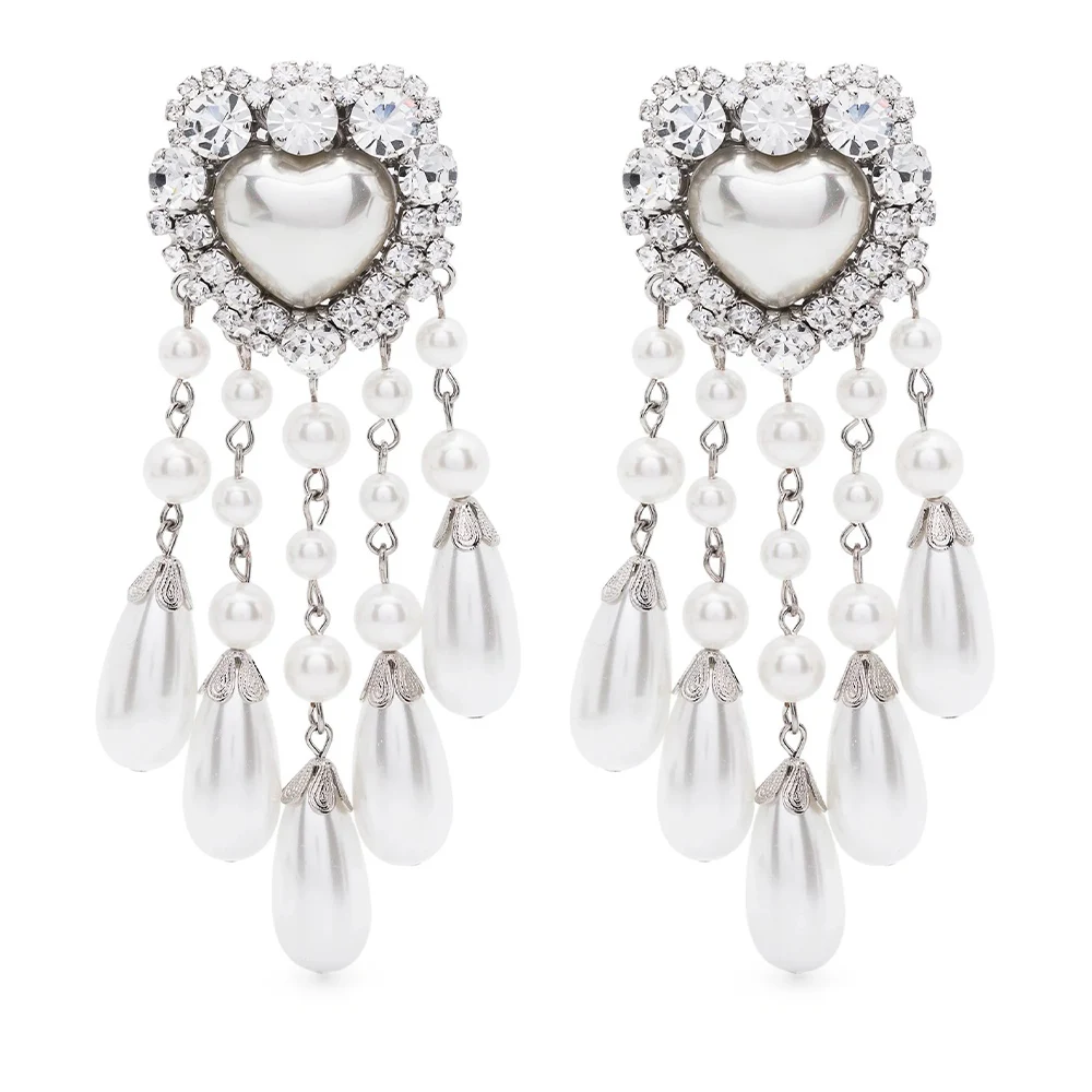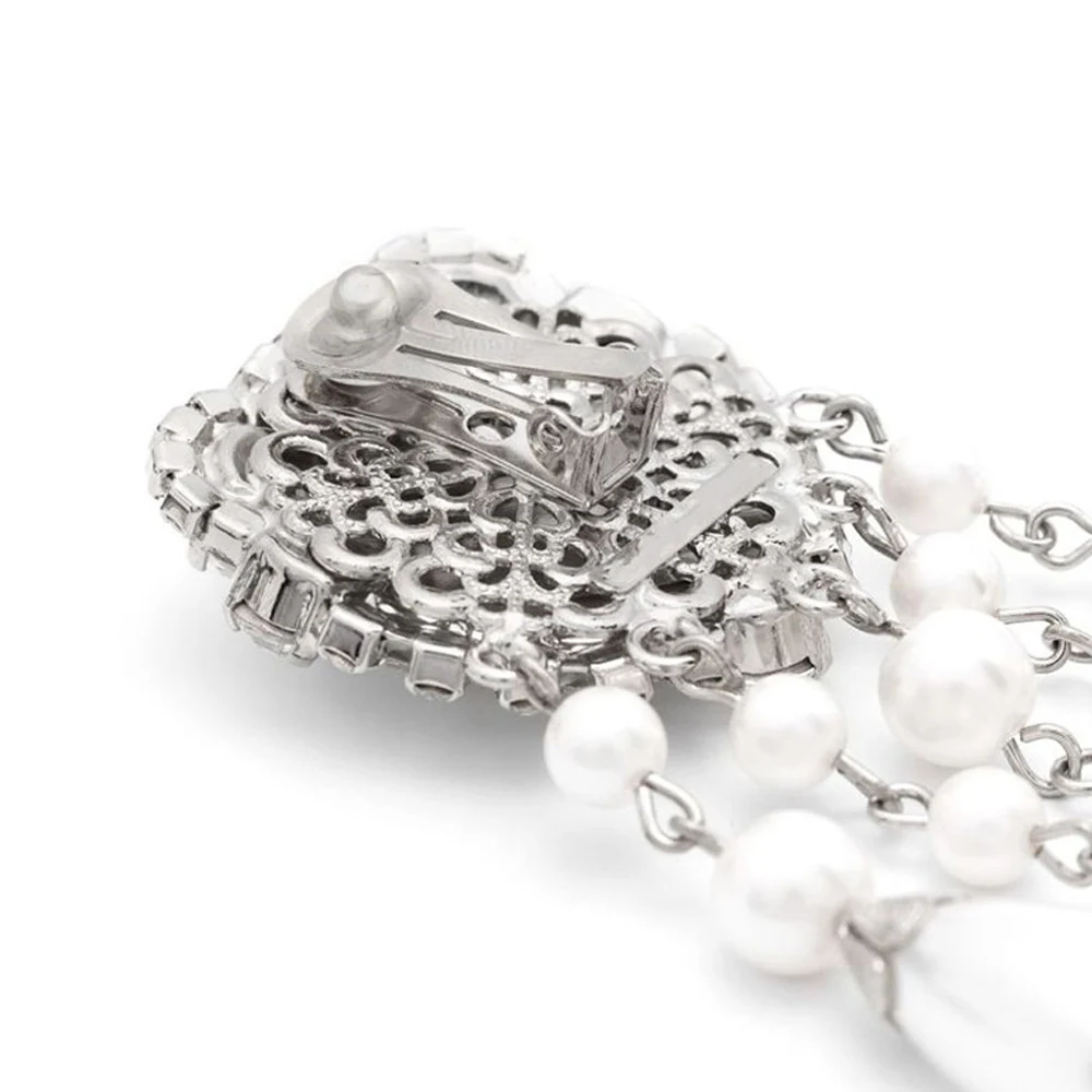 Stonefans Heart Clip-On Earrings for Women Imitation Pearl Tassel Dangle Jewelry