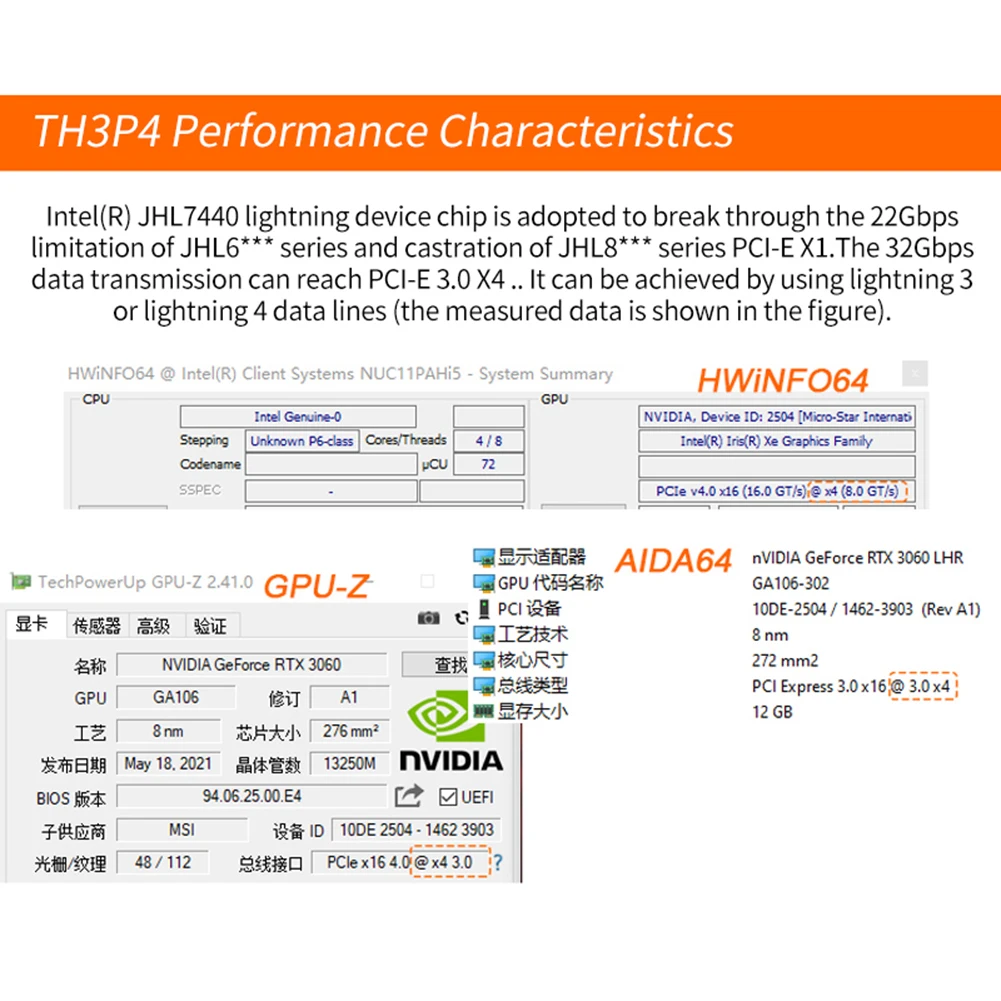 1. Thunderbolt-Compatible 3 and 4 Compatibility: The Thunderbolt-Compatible GPU dock is designed to seamlessly connect with laptops featuring Thunderbolt-Compatible3 or Thunderbolt-Compatible4 ports, offering a high-speed and efficient way to enhance your computing power with an external graphics card.