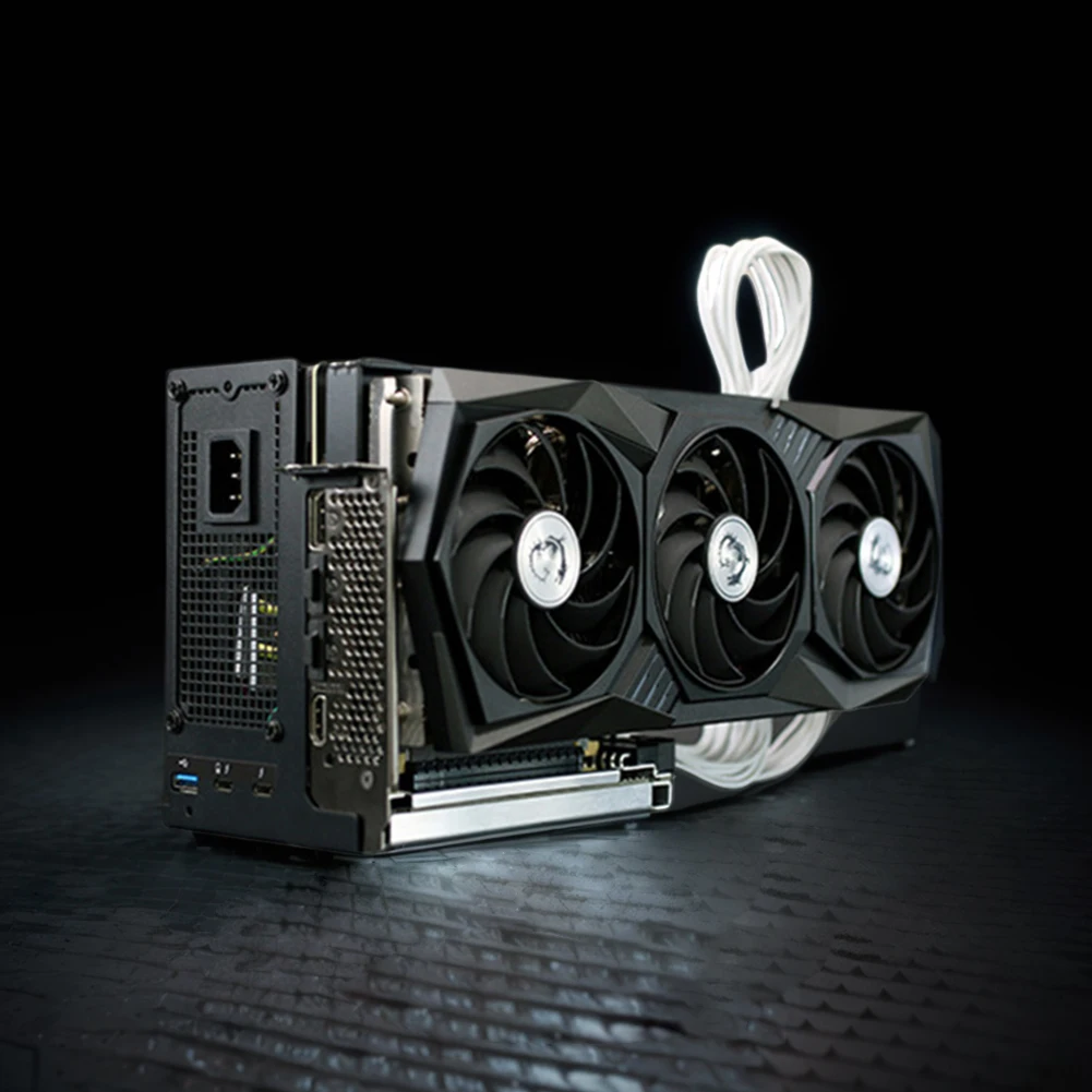 This is an upgraded version of TH3P4G3mni, Thunderbolt-Compatible GPU dock. If your laptop has a Thunderbolt-Compatible 3 or Thunderbolt-Compatible 4 interface, you can use it to connect an external graphics card to improve performance for gaming. It comes with SFX and ATK power sockets, which are more convenient to use.