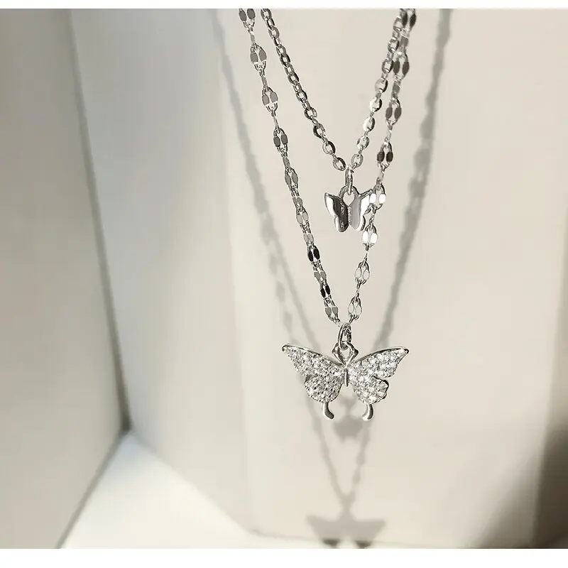 Women’s Sparkling Double Layer Butterfly Necklace Exquisite Collar Chain Jewelry Party Holiday Gift