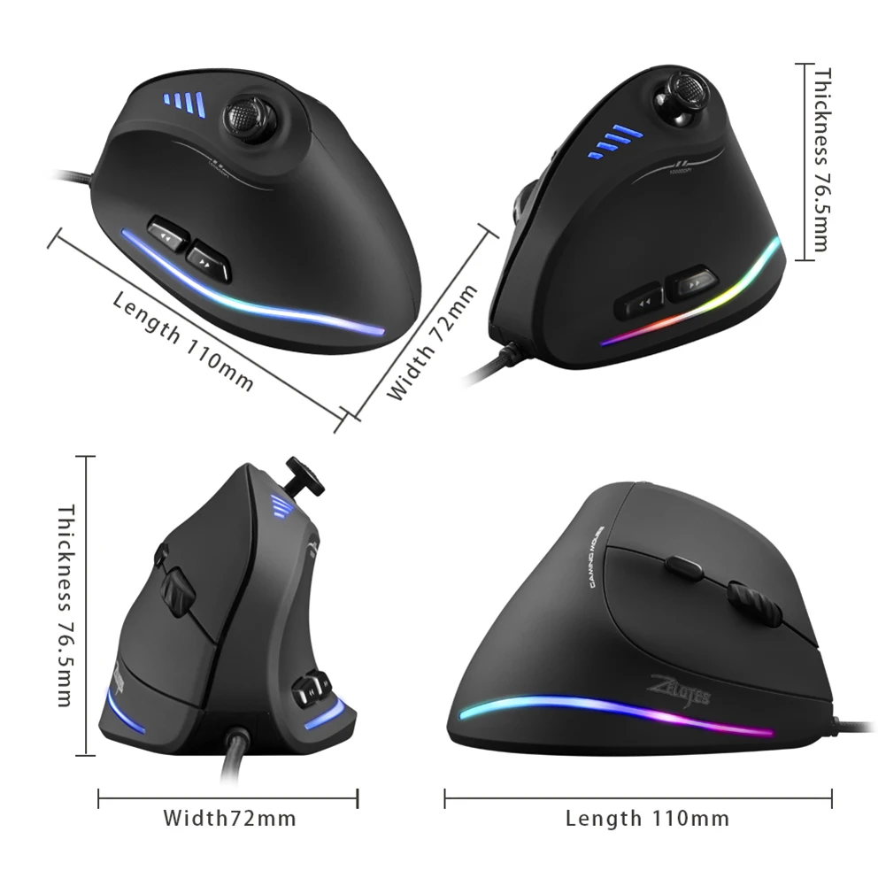 ZELOTES C-18 11 Buttons 10000DPI Adjustable Vertical Mouse RGB Optical Ergonomic Gaming USB Wired Mice