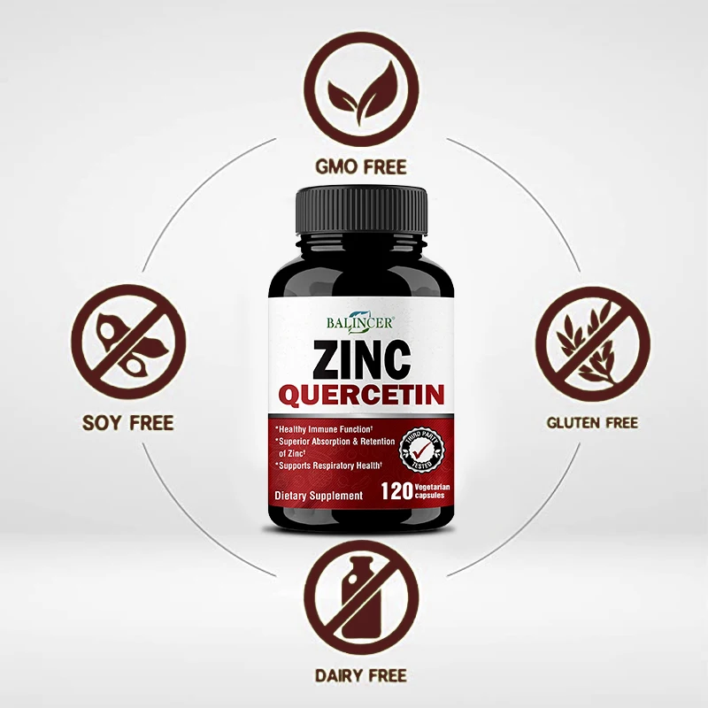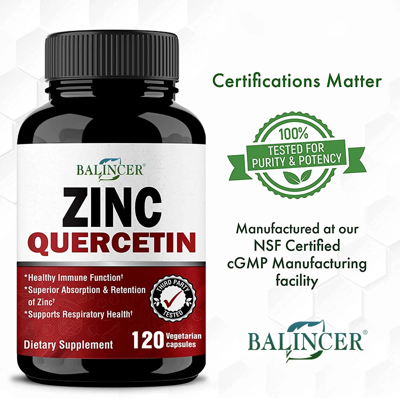 Zinc Quercetin Supplement – Balincer’s Zinc Quercetin is manufactured, packaged and tested in the United States under strict cGMP specifications; each capsule contains 22 mg of zinc and 800 mg of quercetin